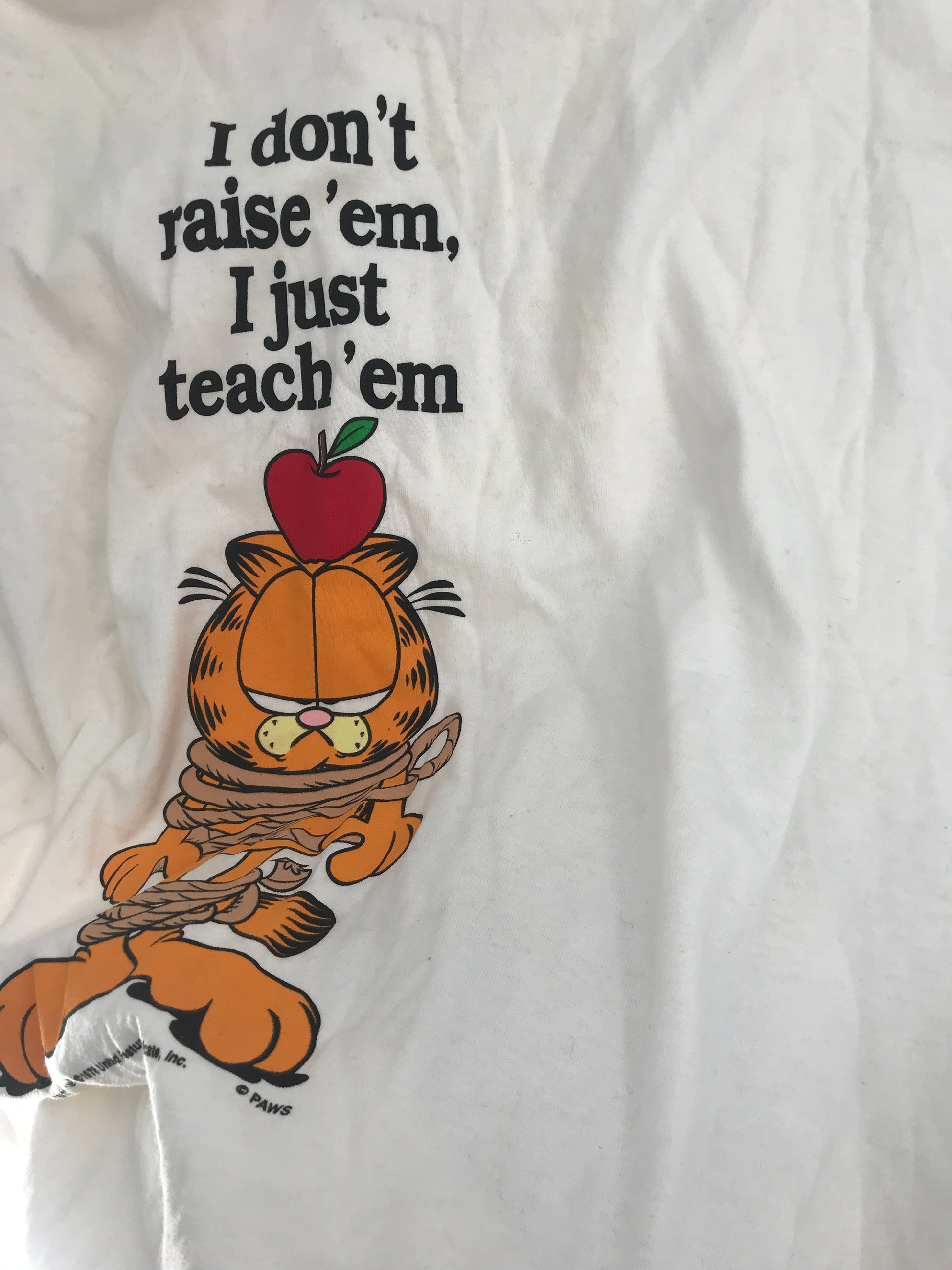 80s Garfield I Don't Raise Em I Just Teach Em Funny Teacher XXL Vintage T-Shirt