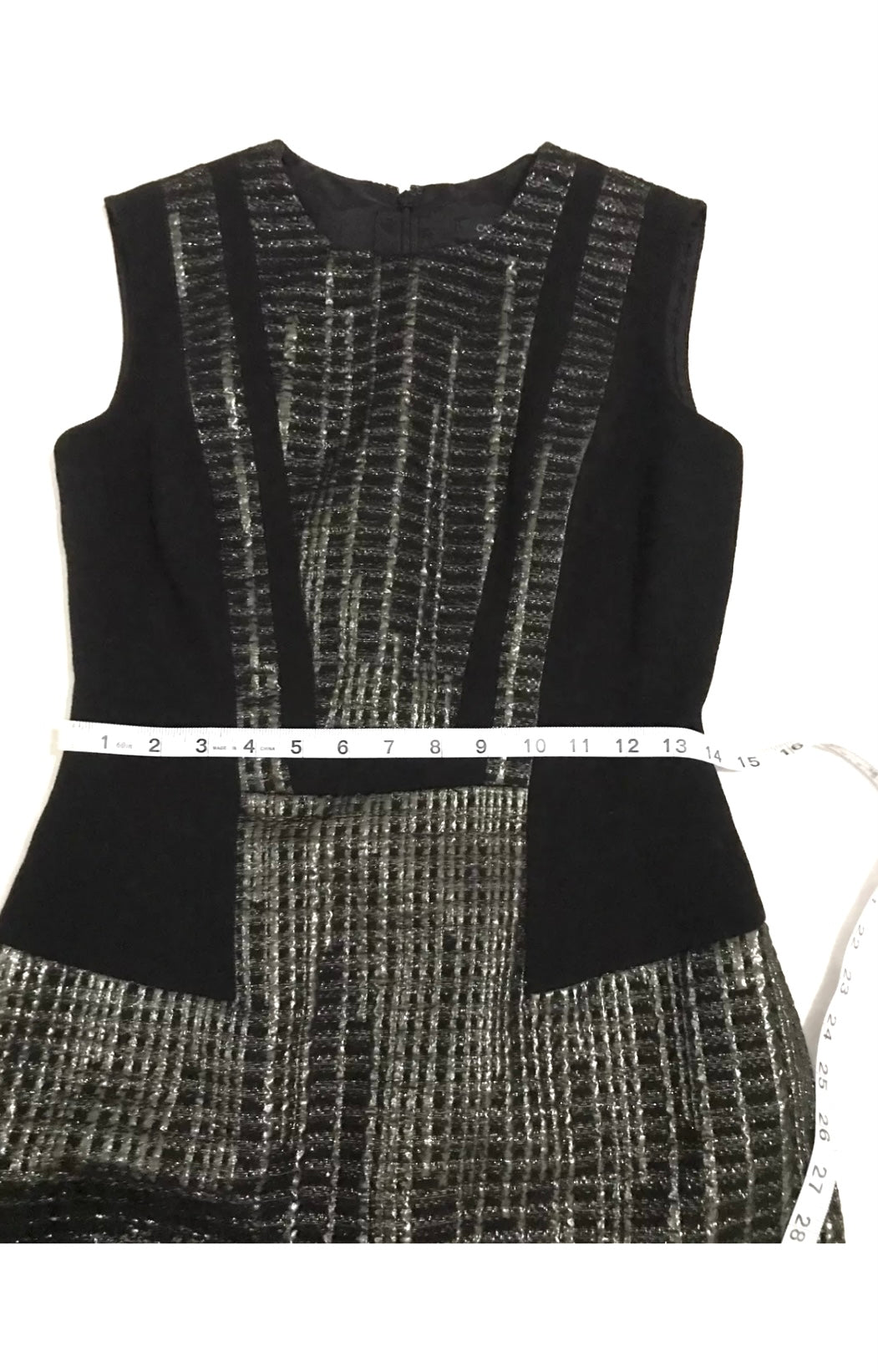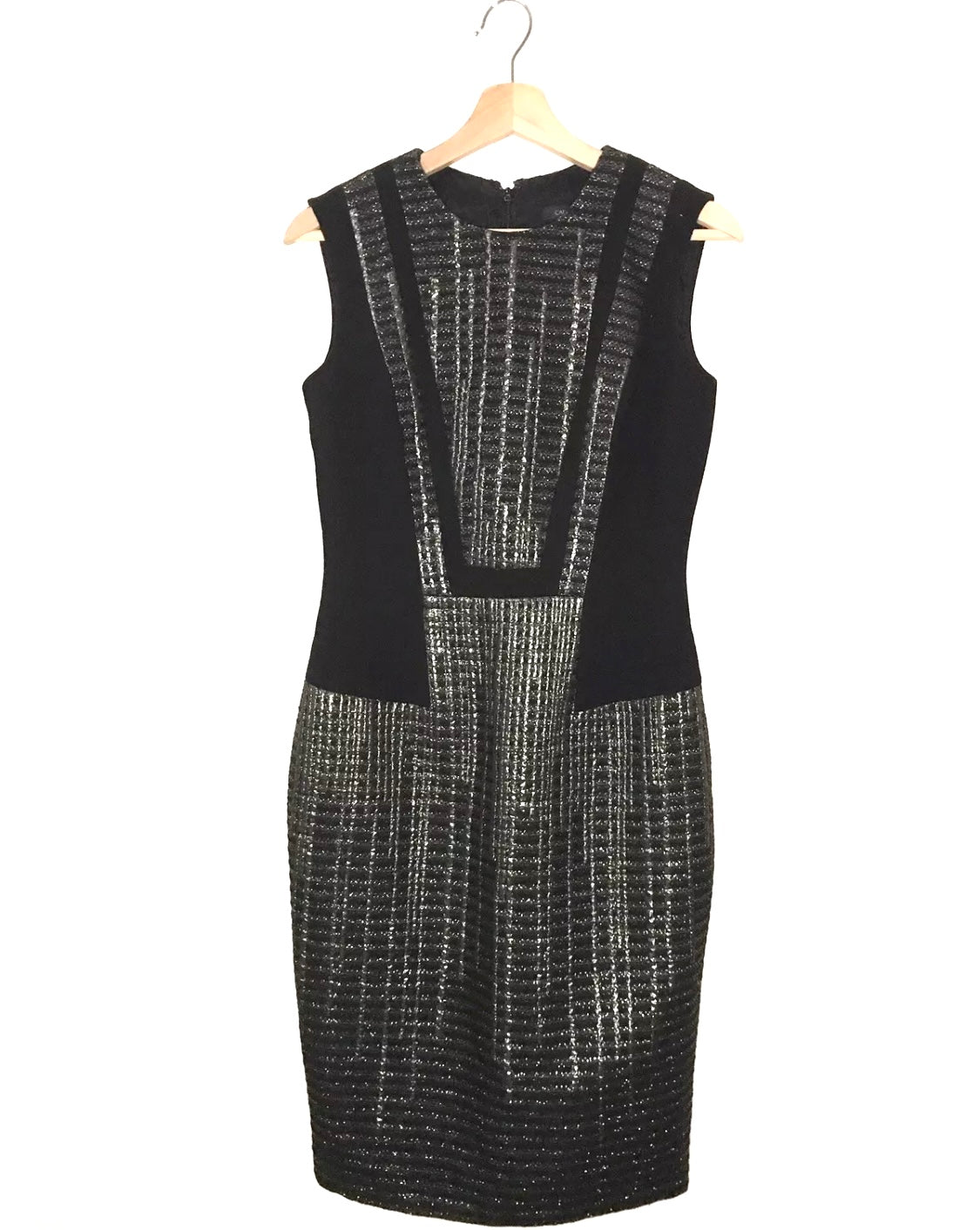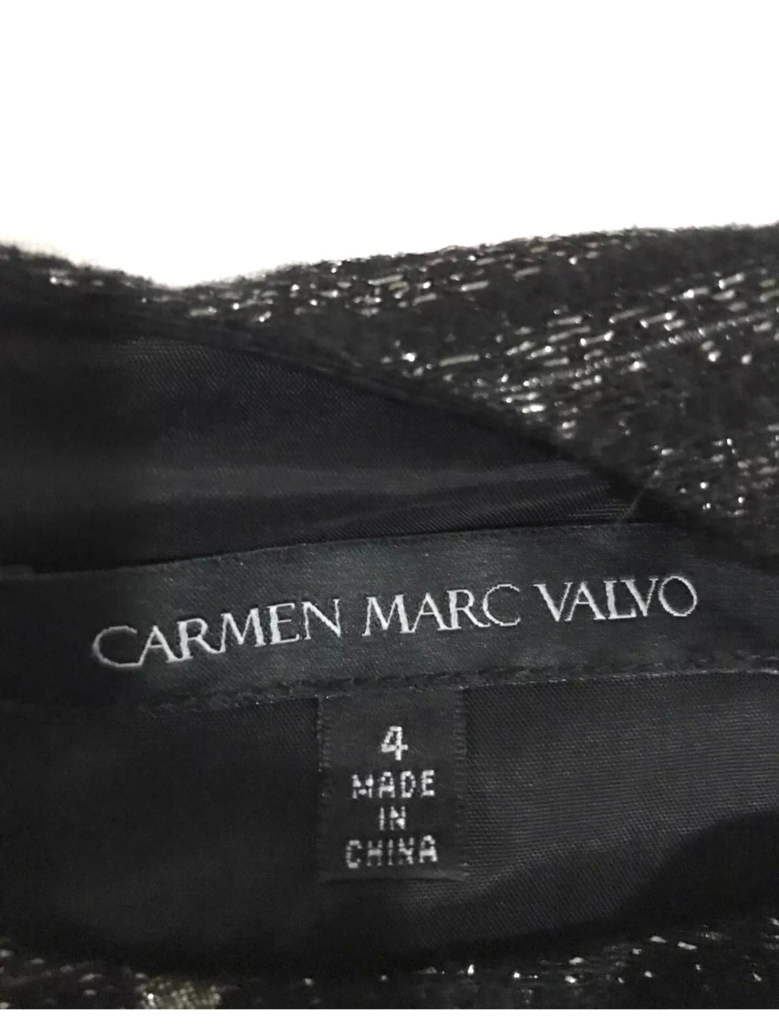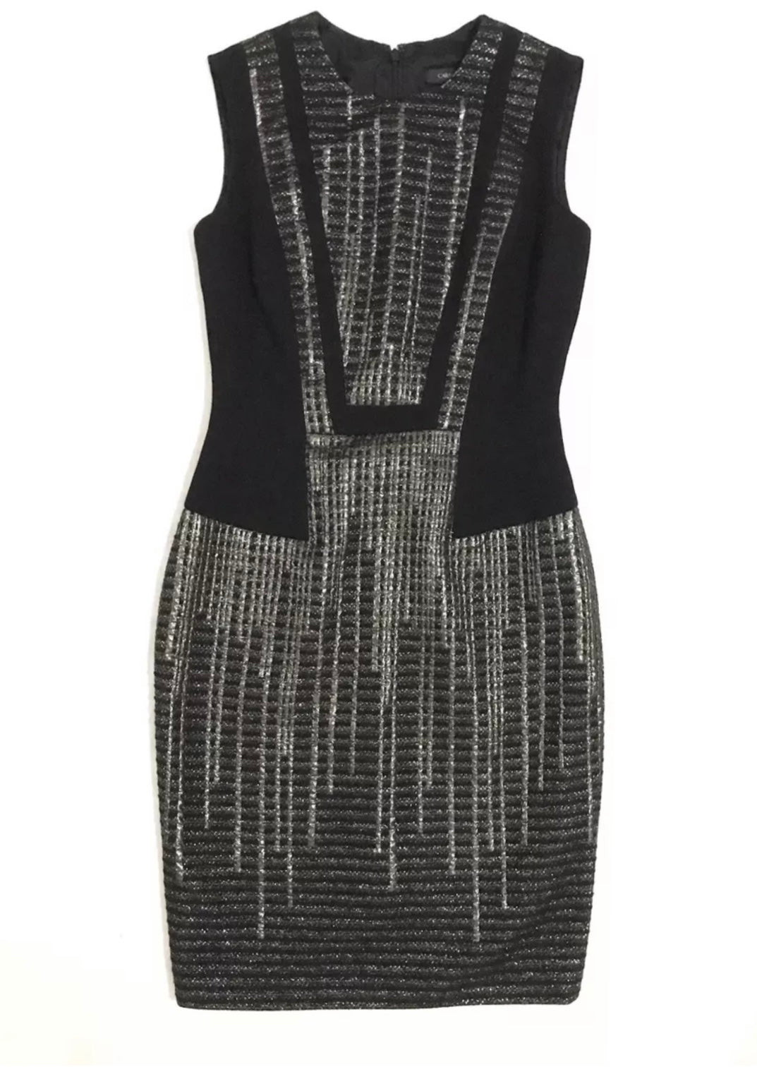 Up for sale is a stunning black and gold dress by Carmen Marc Valvo. This sleeveless dress features an A-line/sheath style with a knee-length cut. The dress is perfect for any casual occasion and is available in size 4. Details color scheme: Black, gray, silver Brand Tags: Carmen March Valvo Fabric: - Condition: Excellent pre-owned dress Size Tag: 4 Measurement Bust: 16” Length: 18” Please see pictures for more details |