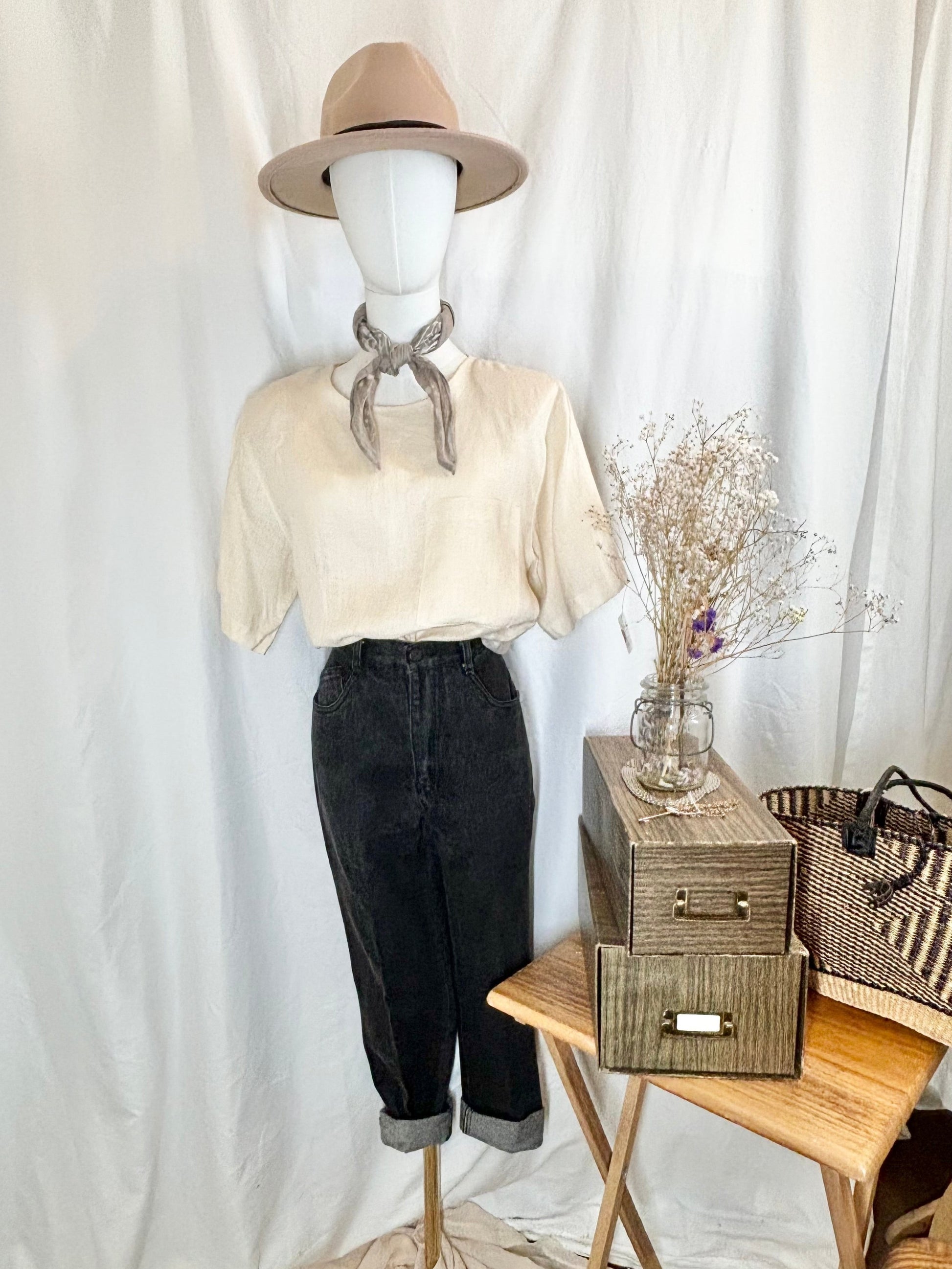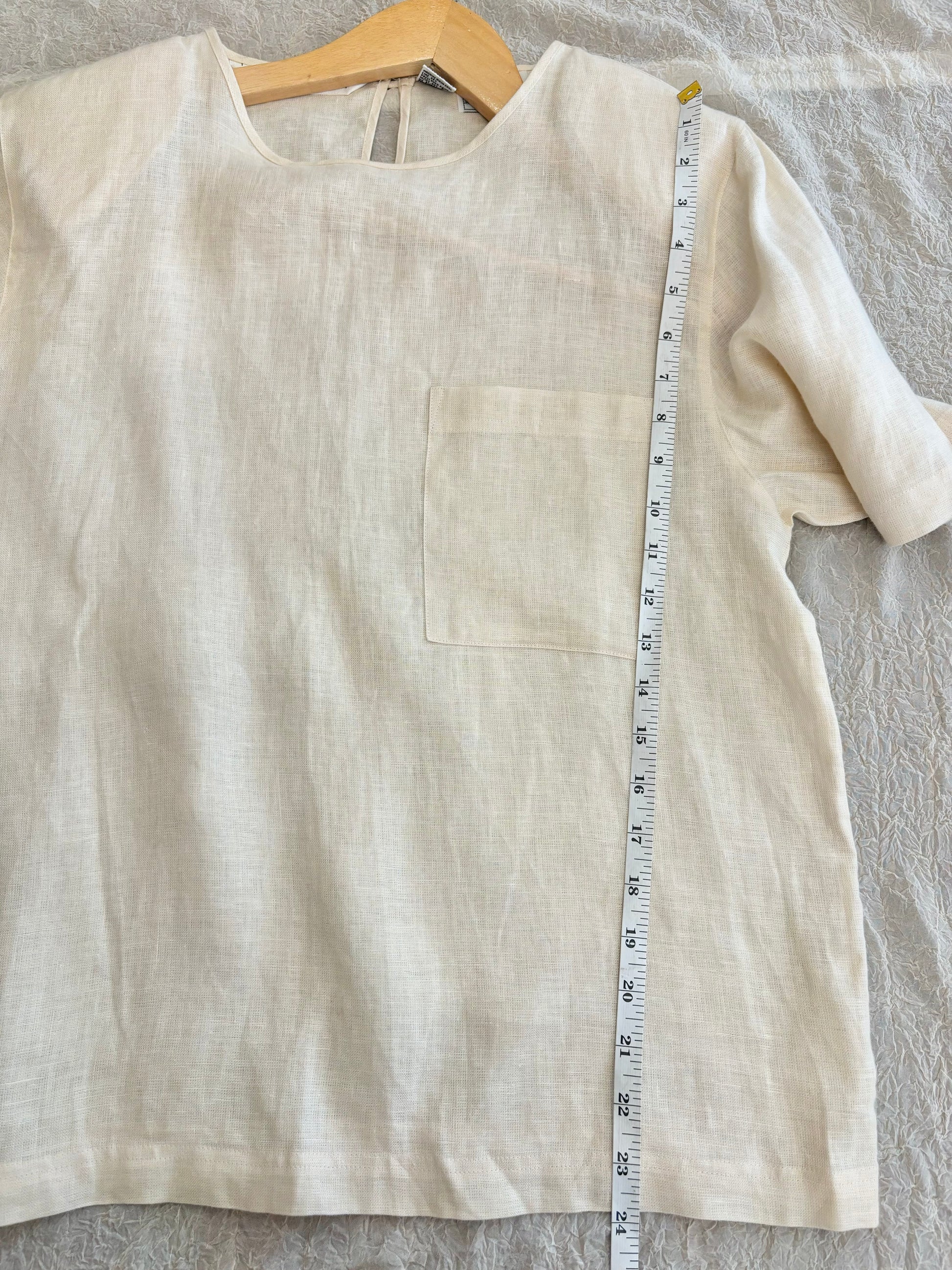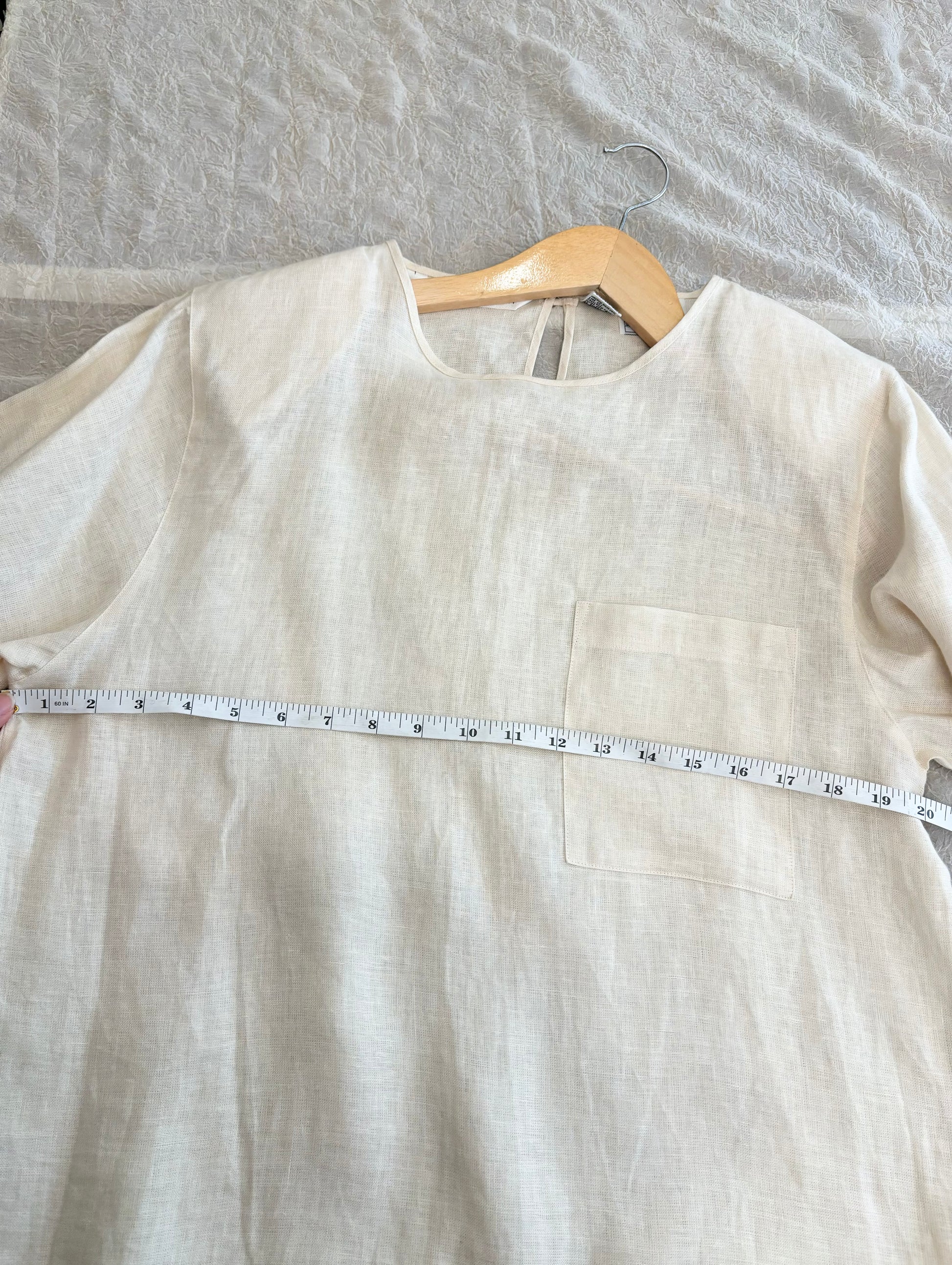 Vintage linen shirt in a soft, natural cream color. Featuring a minimalist design with a single front pocket and a keyhole button detail at the back. Lightweight and breathable, it’s perfect for effortless, everyday style. This timeless piece has a relaxed fit, bringing an understated elegance to any outfit.