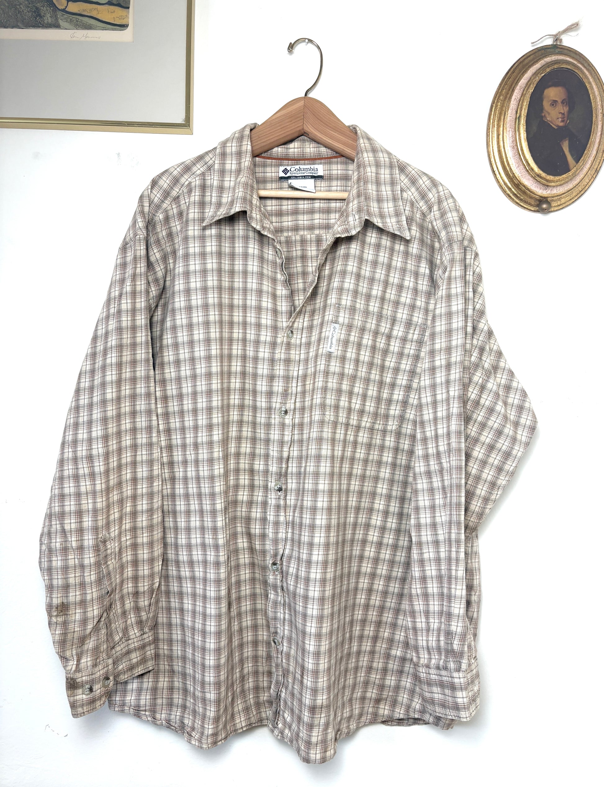 Columbia Shirt Mens XXL-Sportwear Tan Plaid Casual Button-Down Long Sleeve