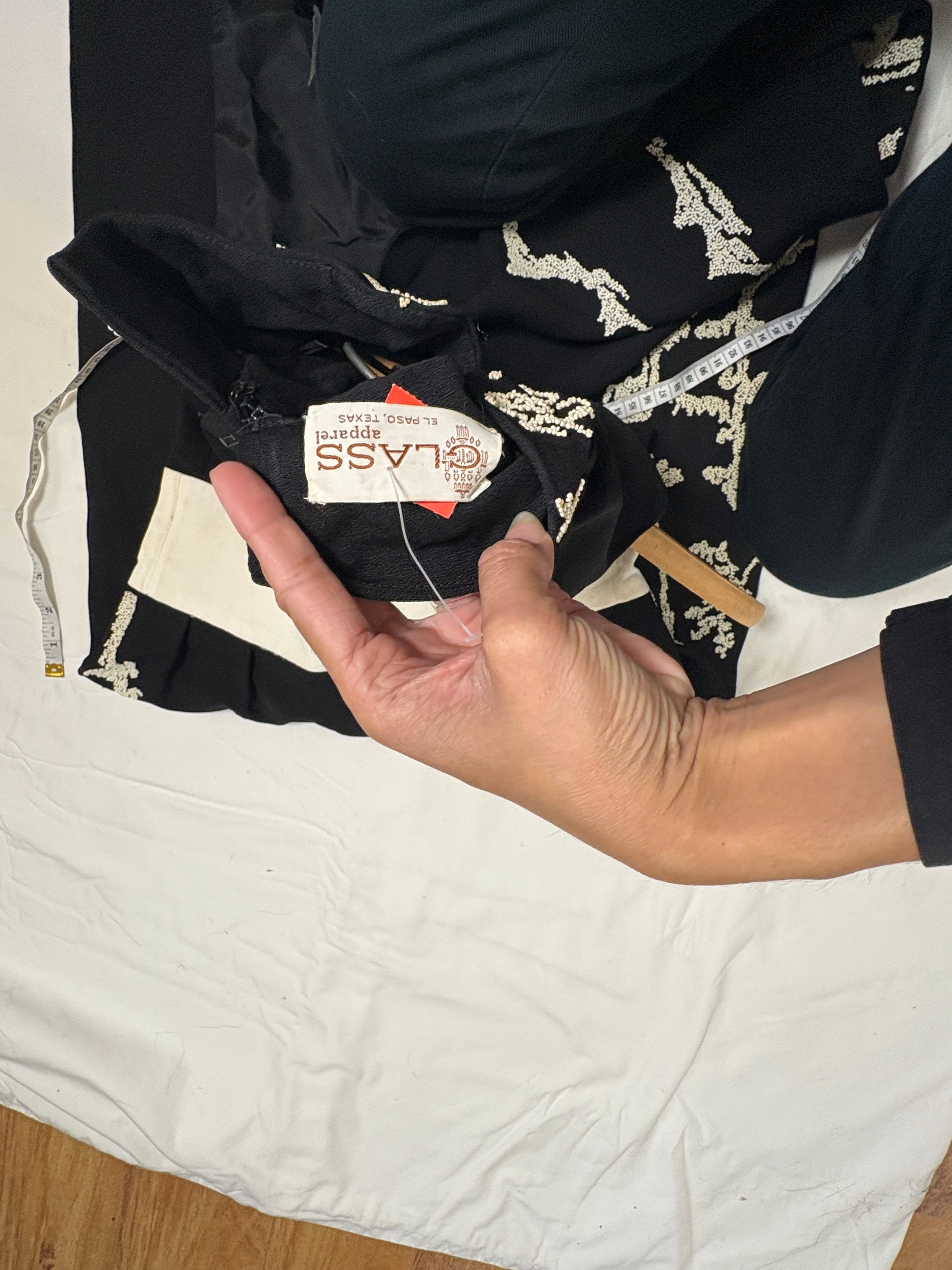 Glass Apparel Custom Vtg 60s Black Color With Beaded Chinese new year Dress