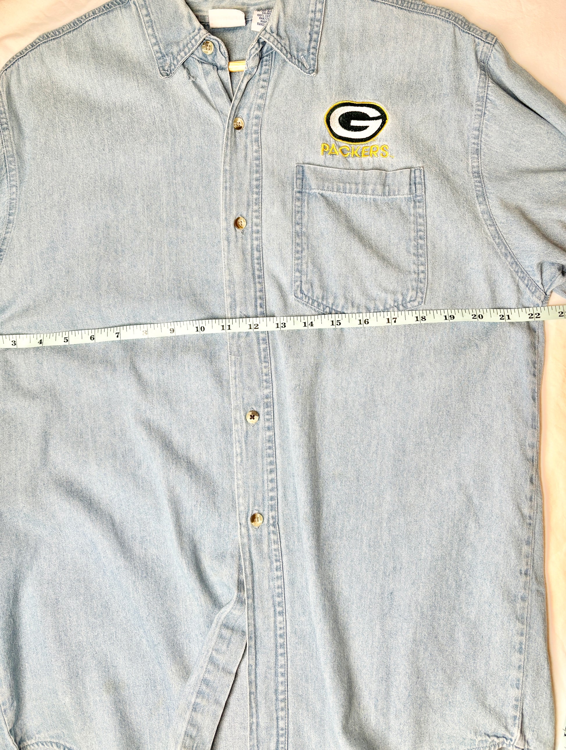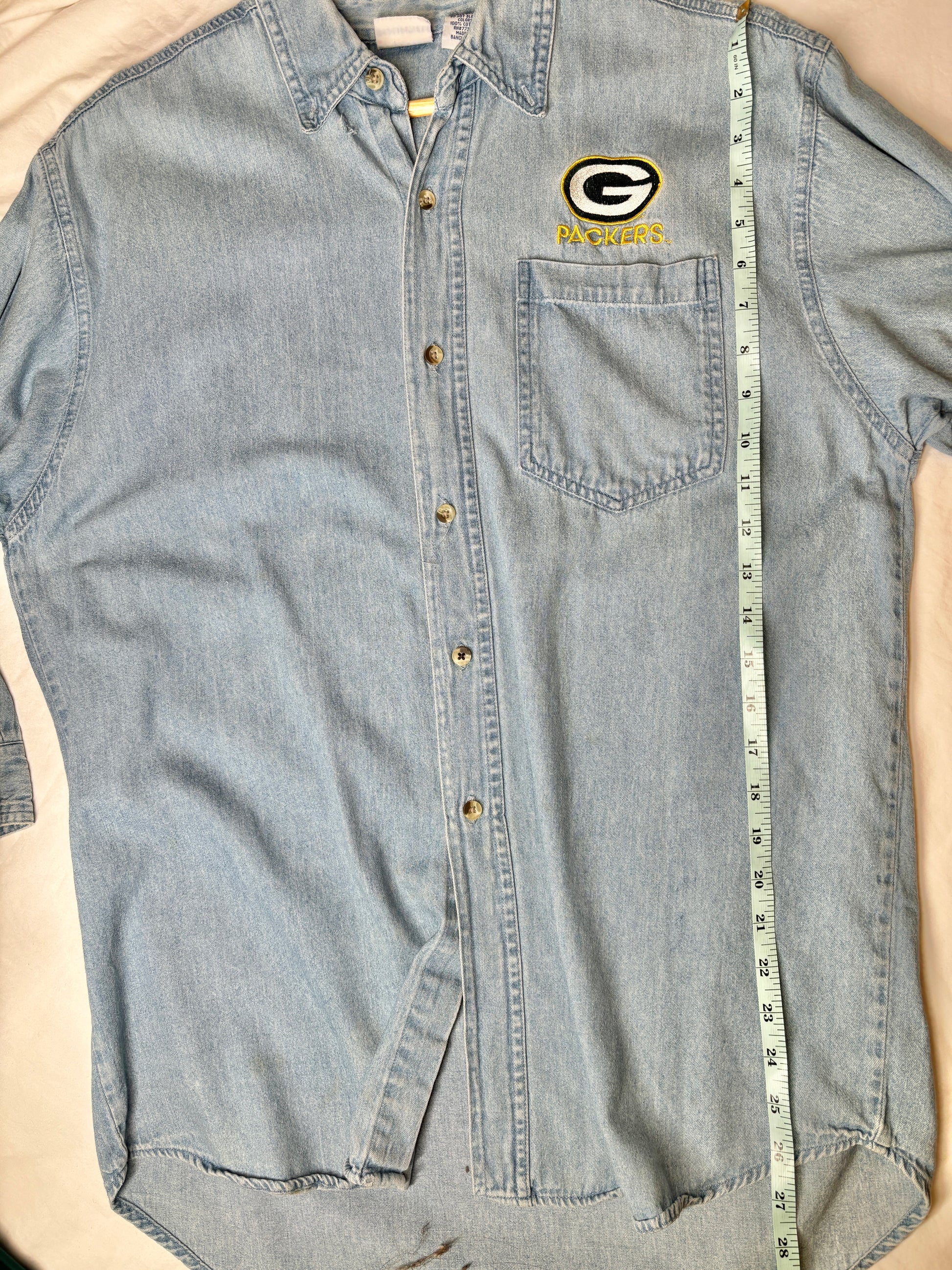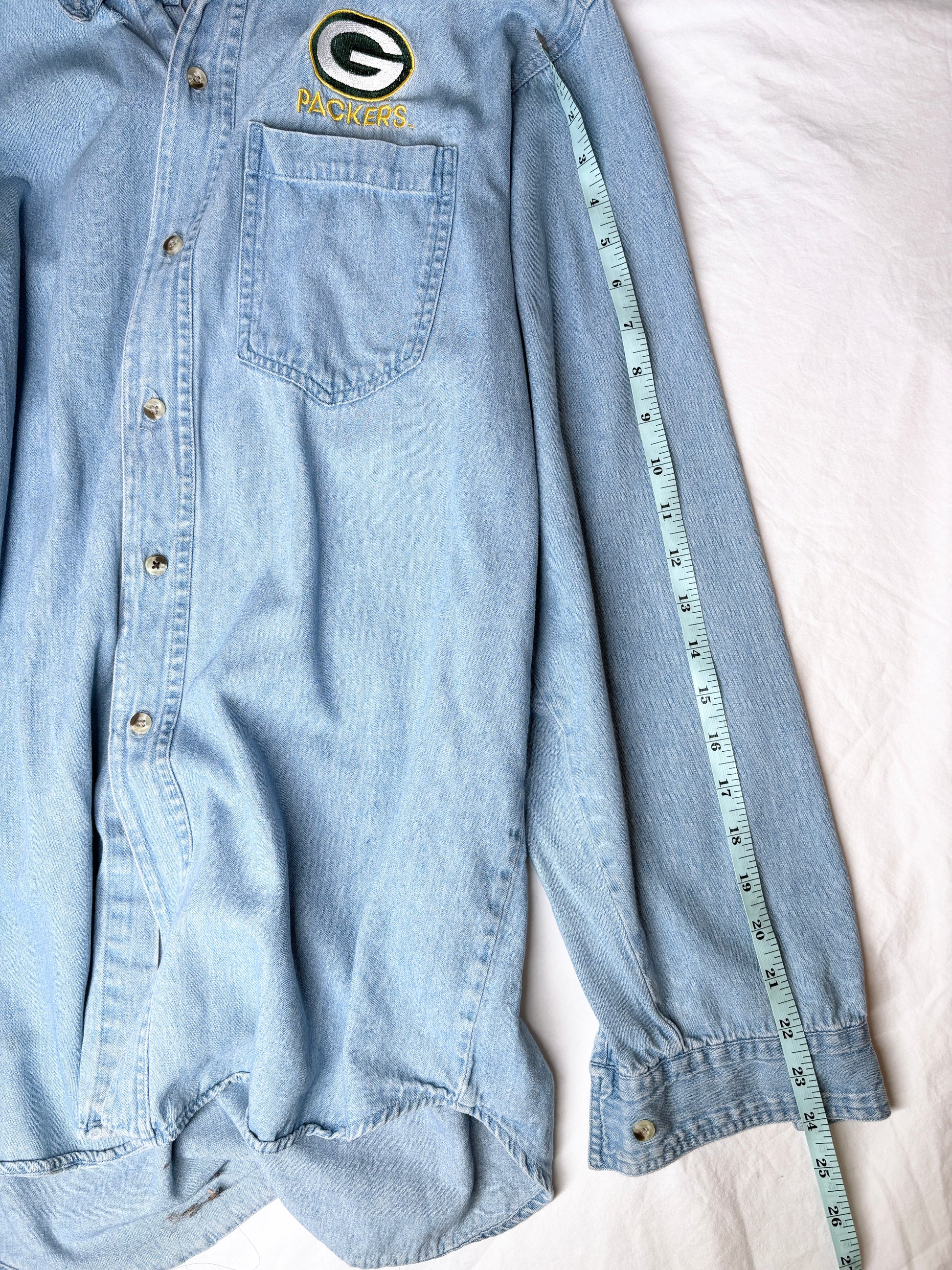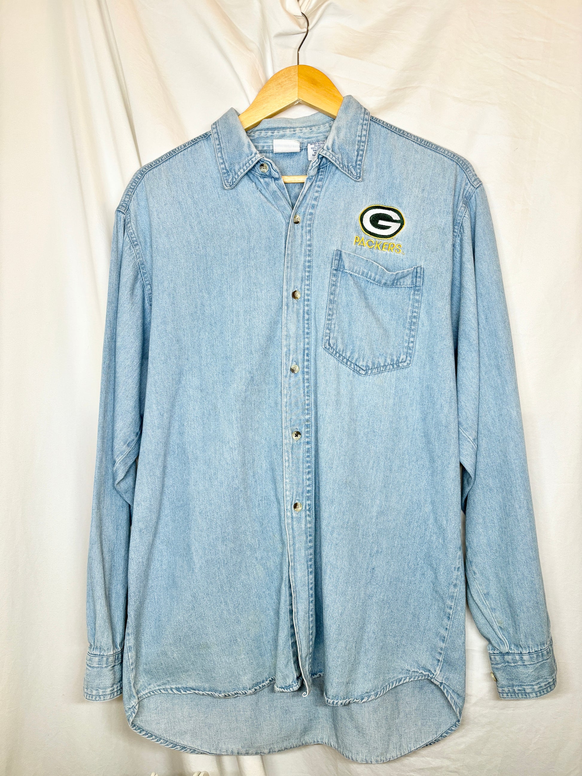 Vintage Green Bay Packers Denim Button-Up – Size S (Sold As-Is)