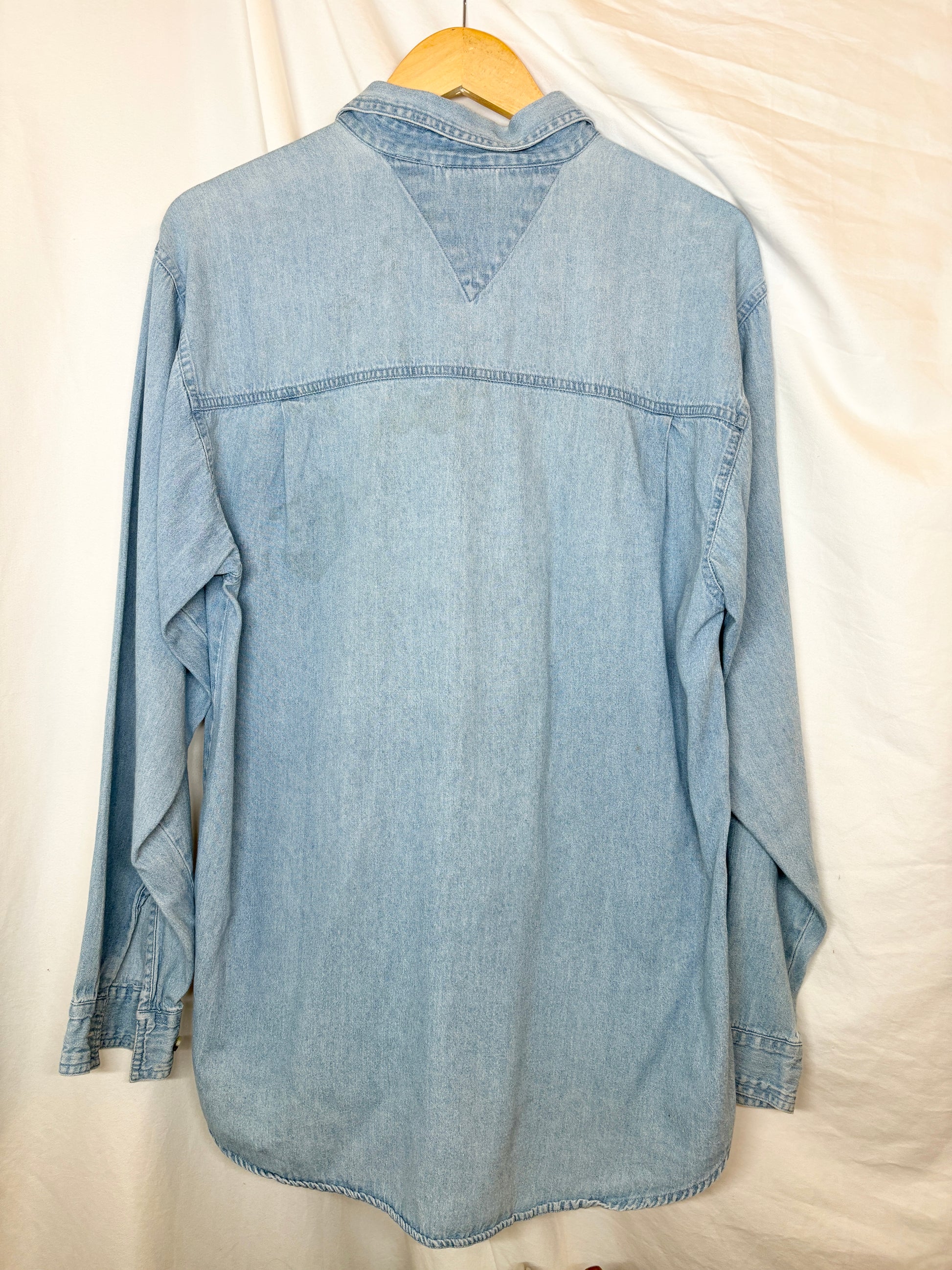 Show your team spirit with this vintage Green Bay Packers denim button-up! A true throwback piece featuring embroidered details and a classic relaxed fit. Made from 100% cotton with a soft, worn-in feel that only vintage can deliver.