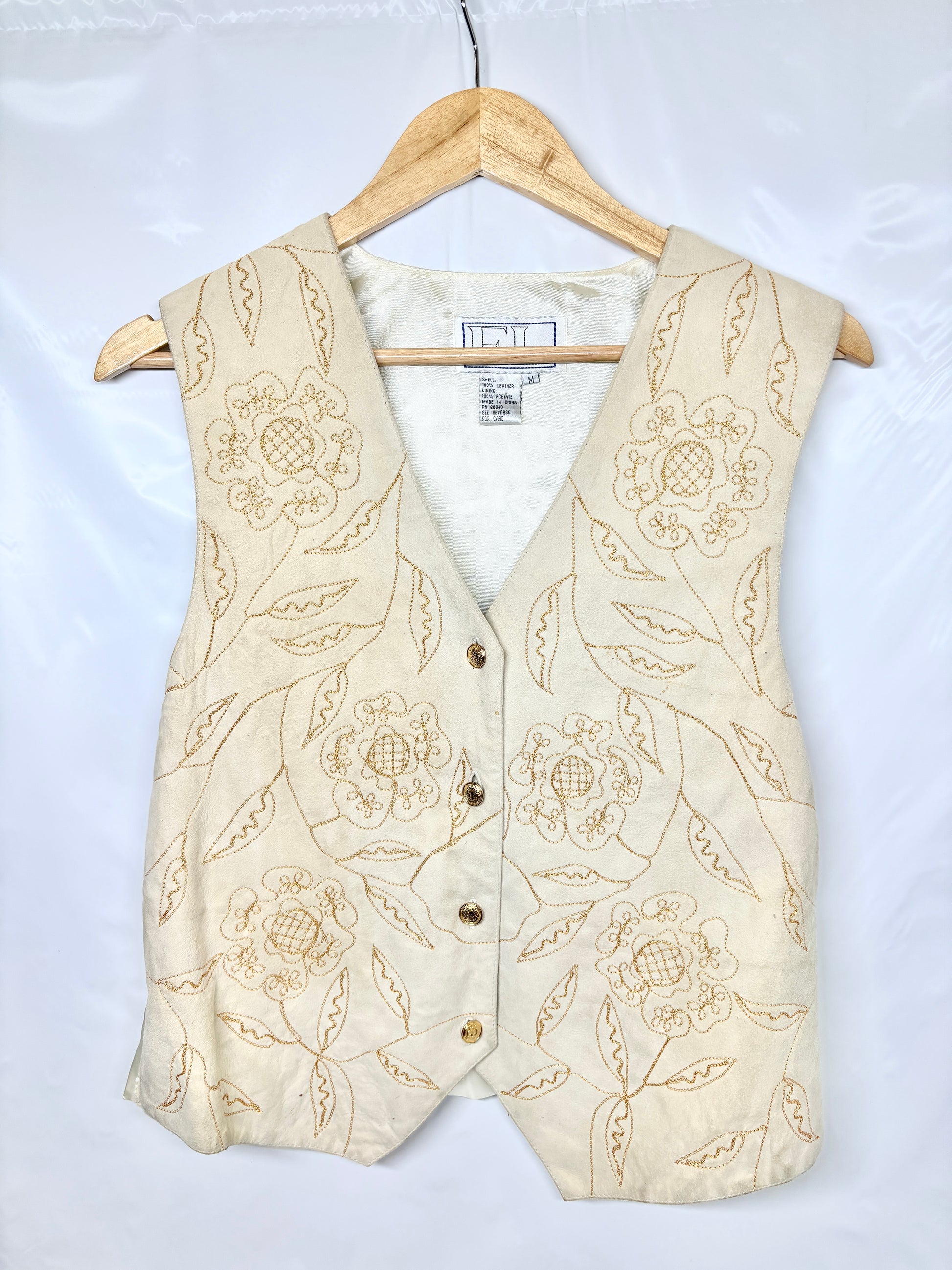 Vintage Erez Levy Cream Embroidered Western Vest – Size M