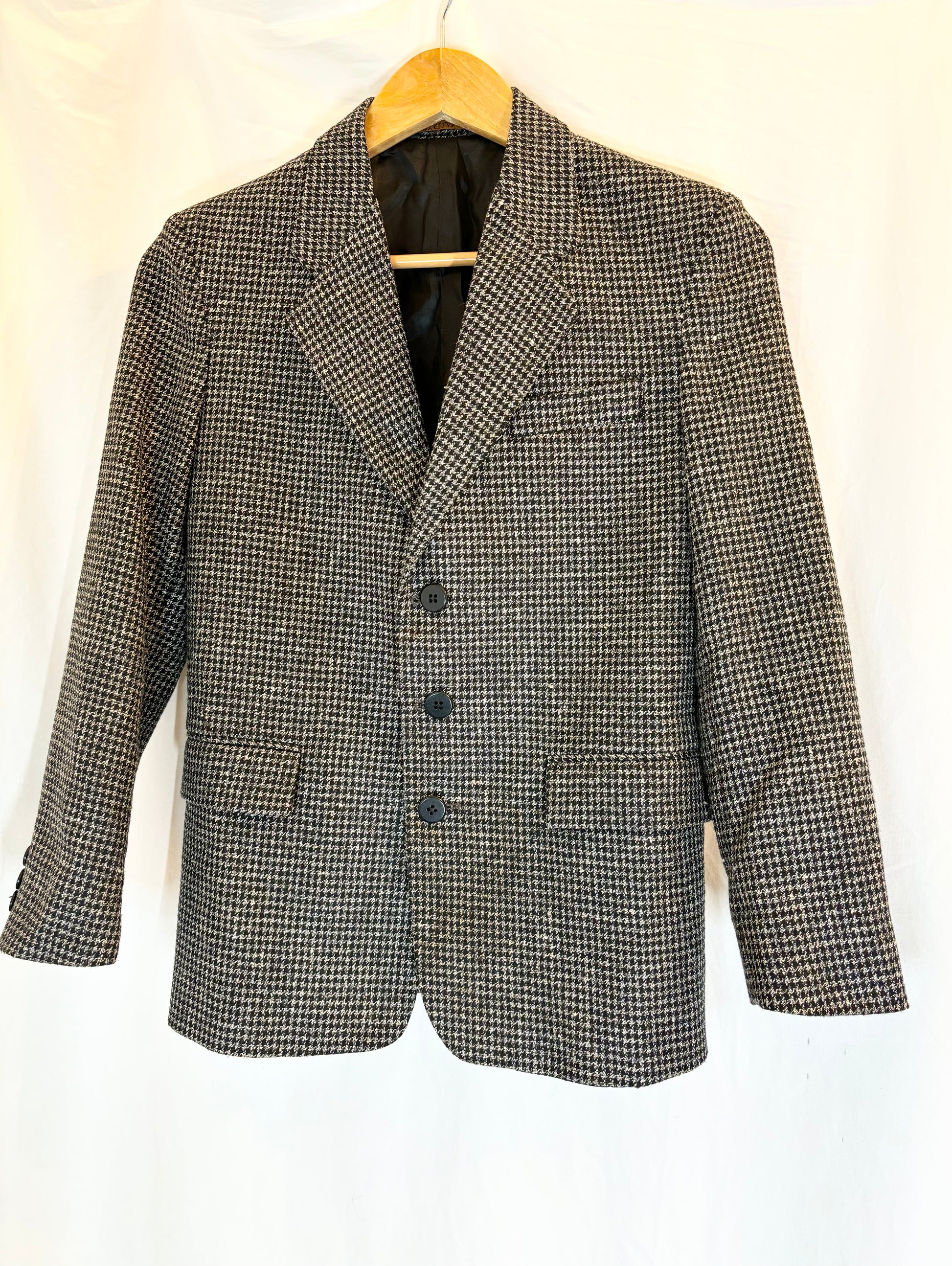 This classic Vintage Black and White houndstooth Blazer in size 14 is versatile and suitable for any occasion, from the office to a more relaxed setting. It's the perfect addition to any wardrobe.