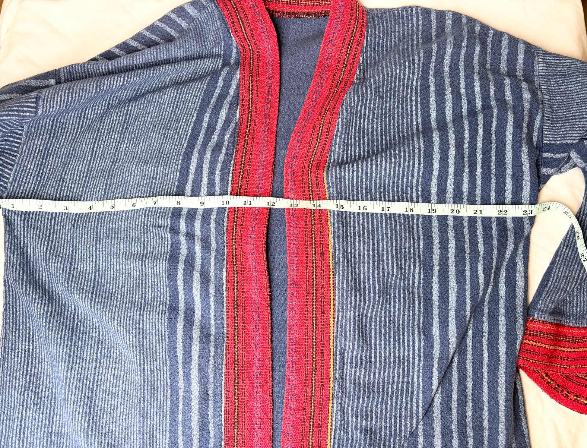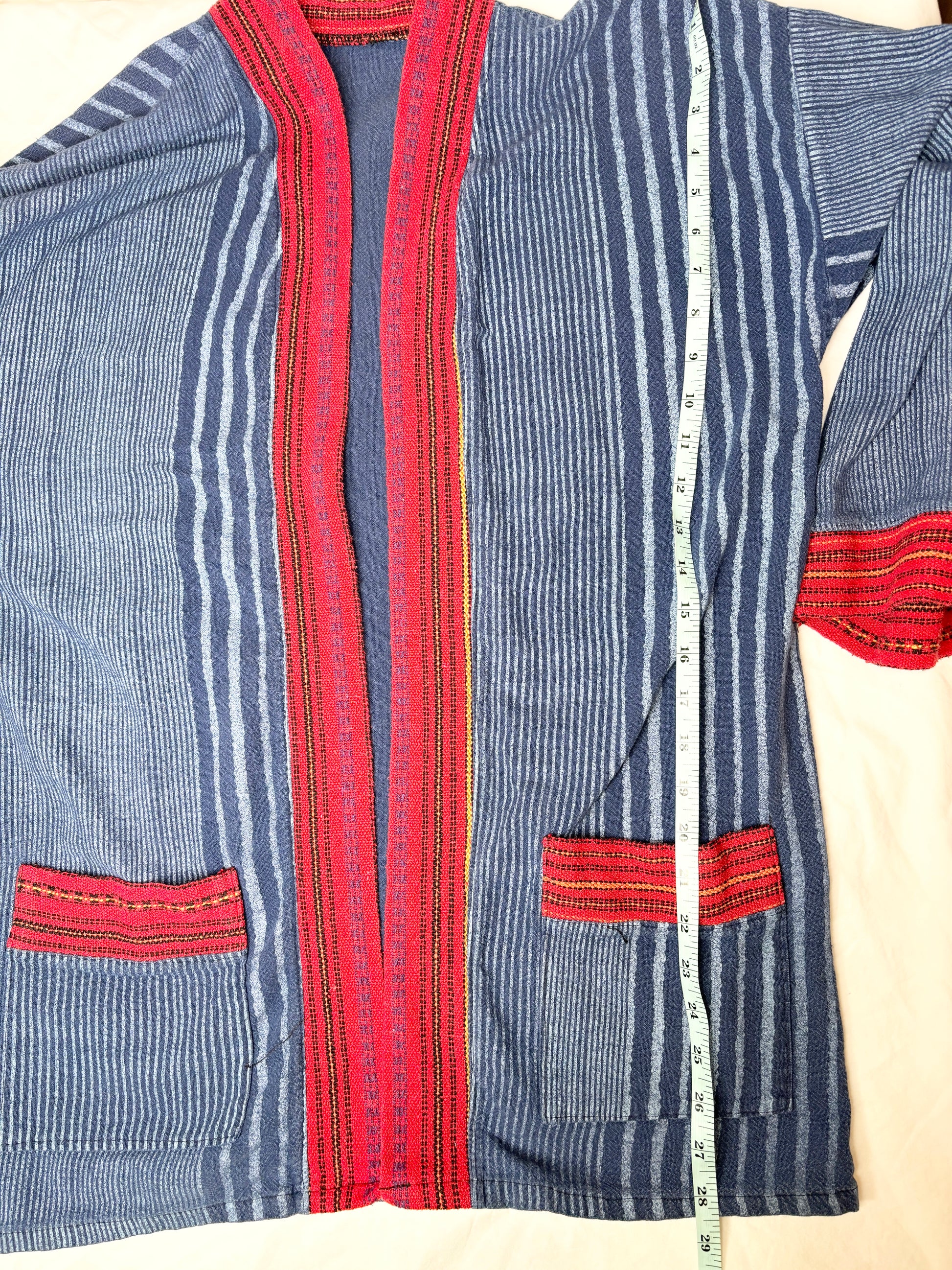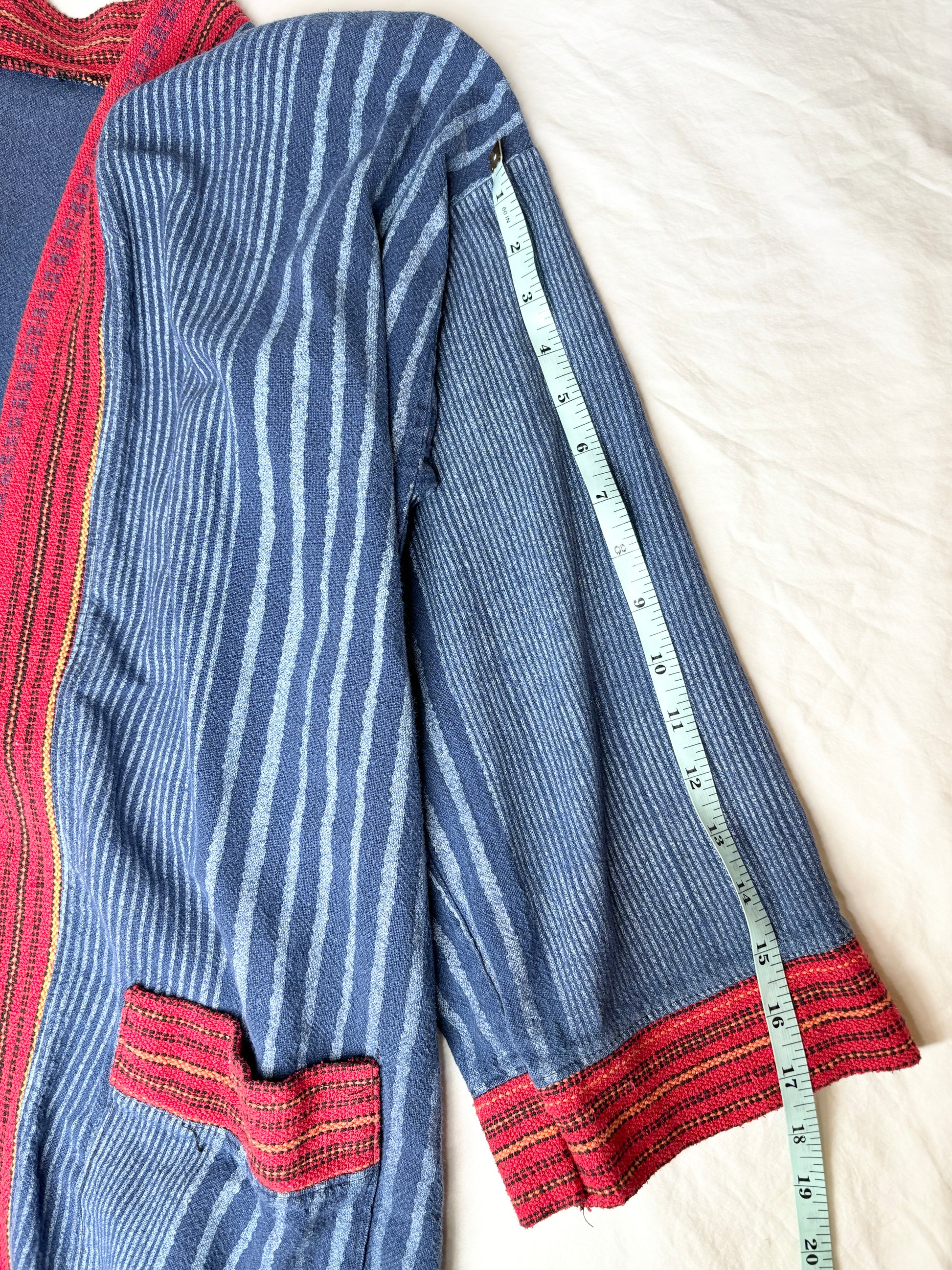 This vintage indigo kimono features an open front and a relaxed fit, bringing effortless bohemian charm to any outfit. With its unique pattern and soft drape. The character of the fabric and details give it a one-of-a-kind appeal that stands out in any wardrobe.