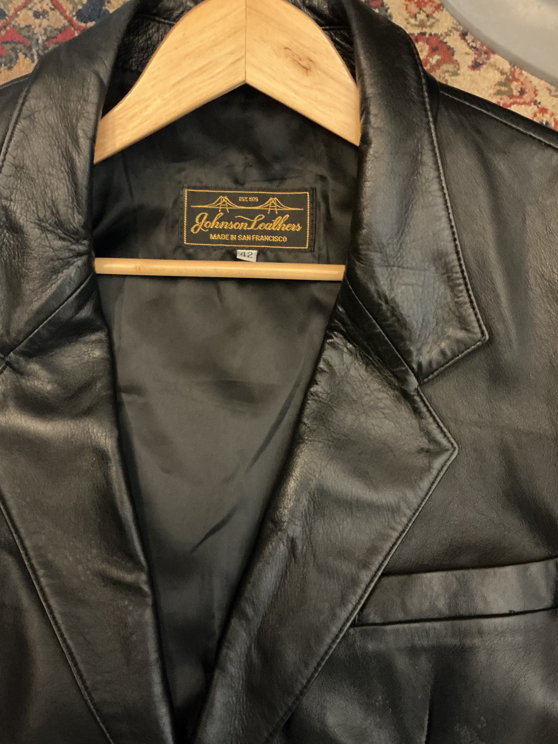 Johnson Leathers San Francisco Black Leather Coat Jacket – Size 42 – Made in USA