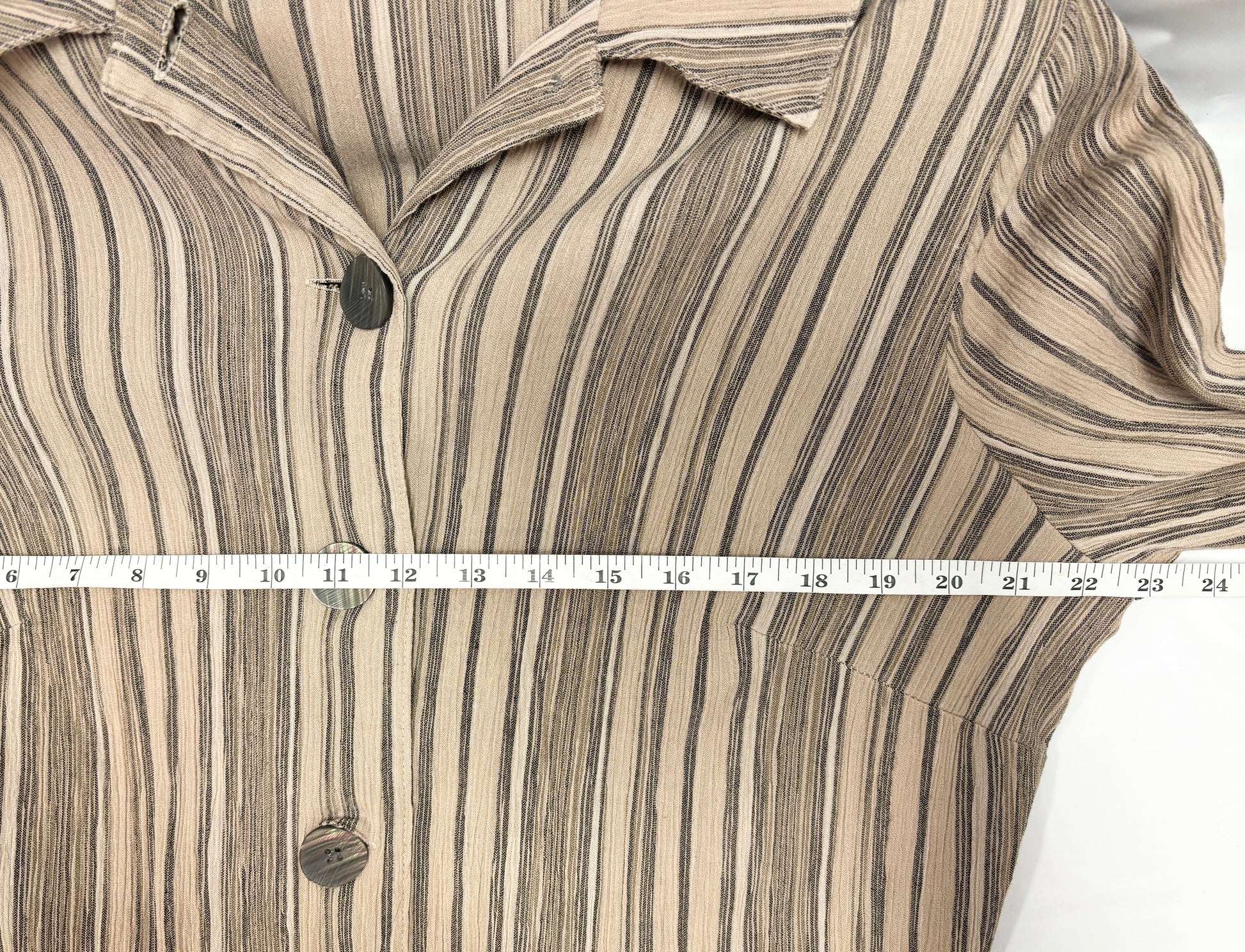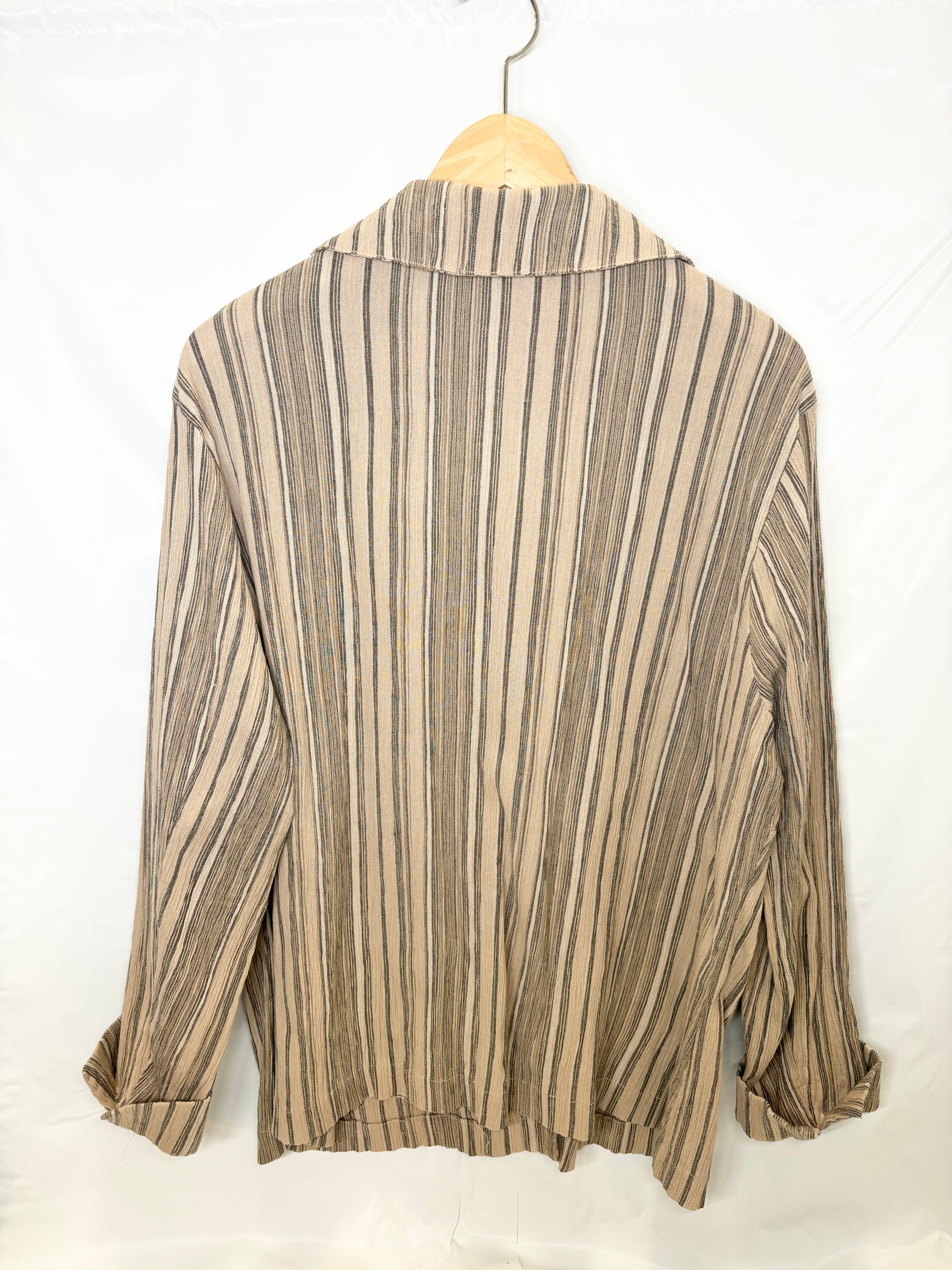 Vintage Earth Tone Striped Button-Up Shirt (No Size Tag)