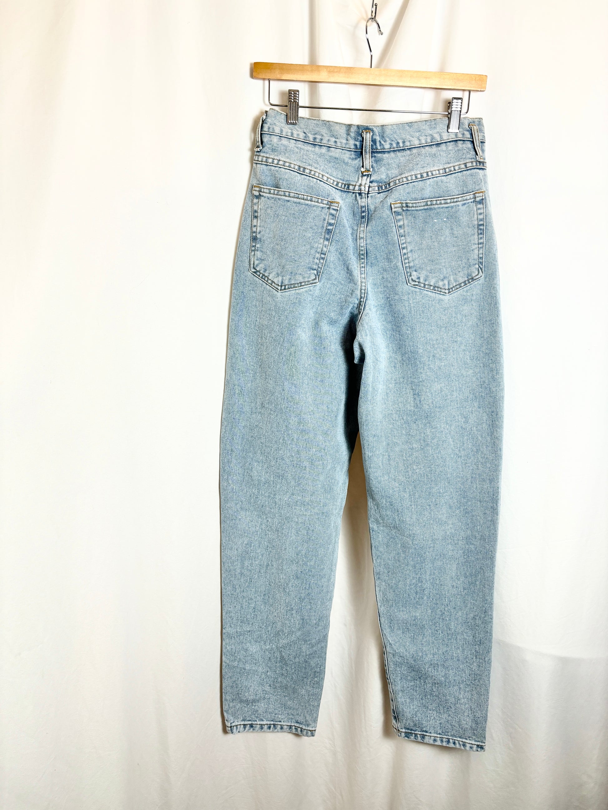 Beautiful light wash denim with a timeless straight-leg silhouette — perfect for everyday wear or styled with a tucked blouse for that effortless vintage look.