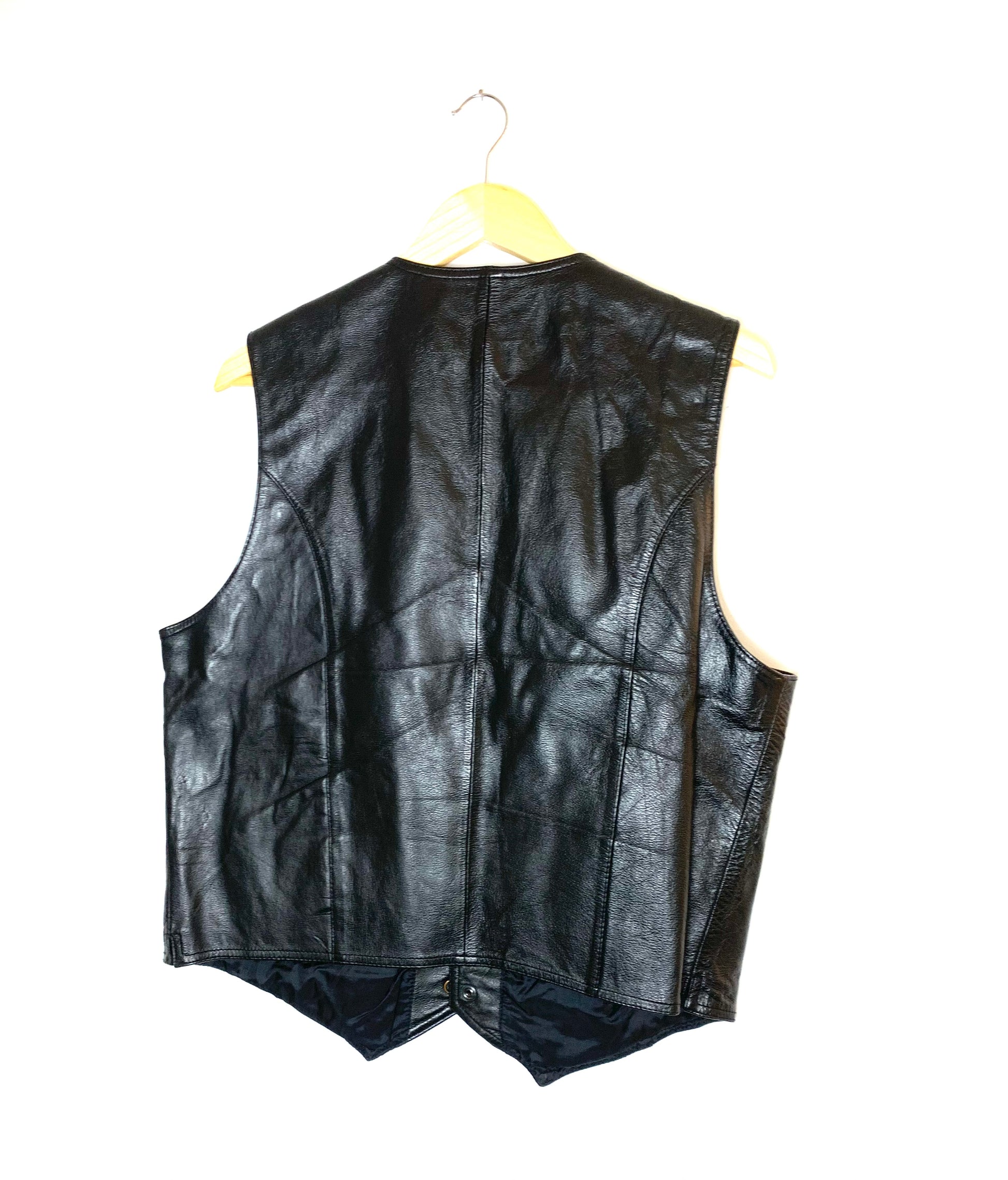 Mens Wilsons The Leather Experts Black Leather Vest L Button Up Biker Style