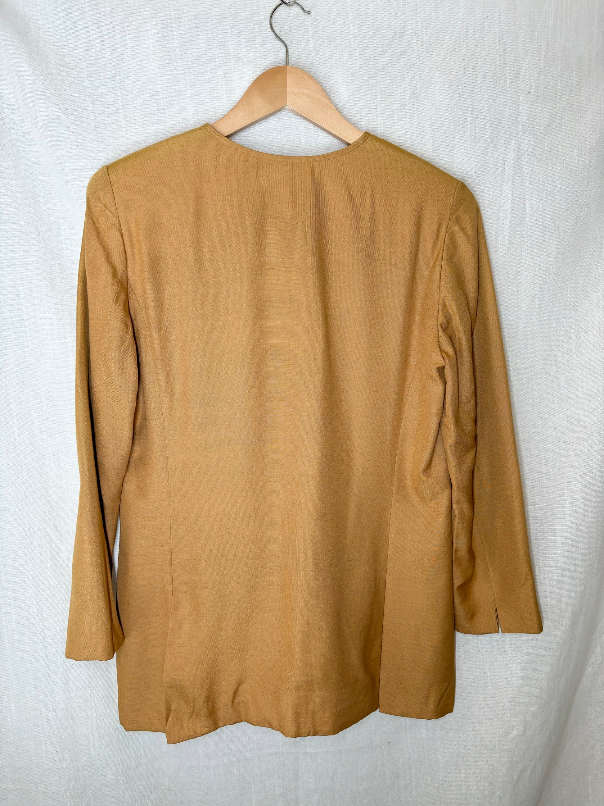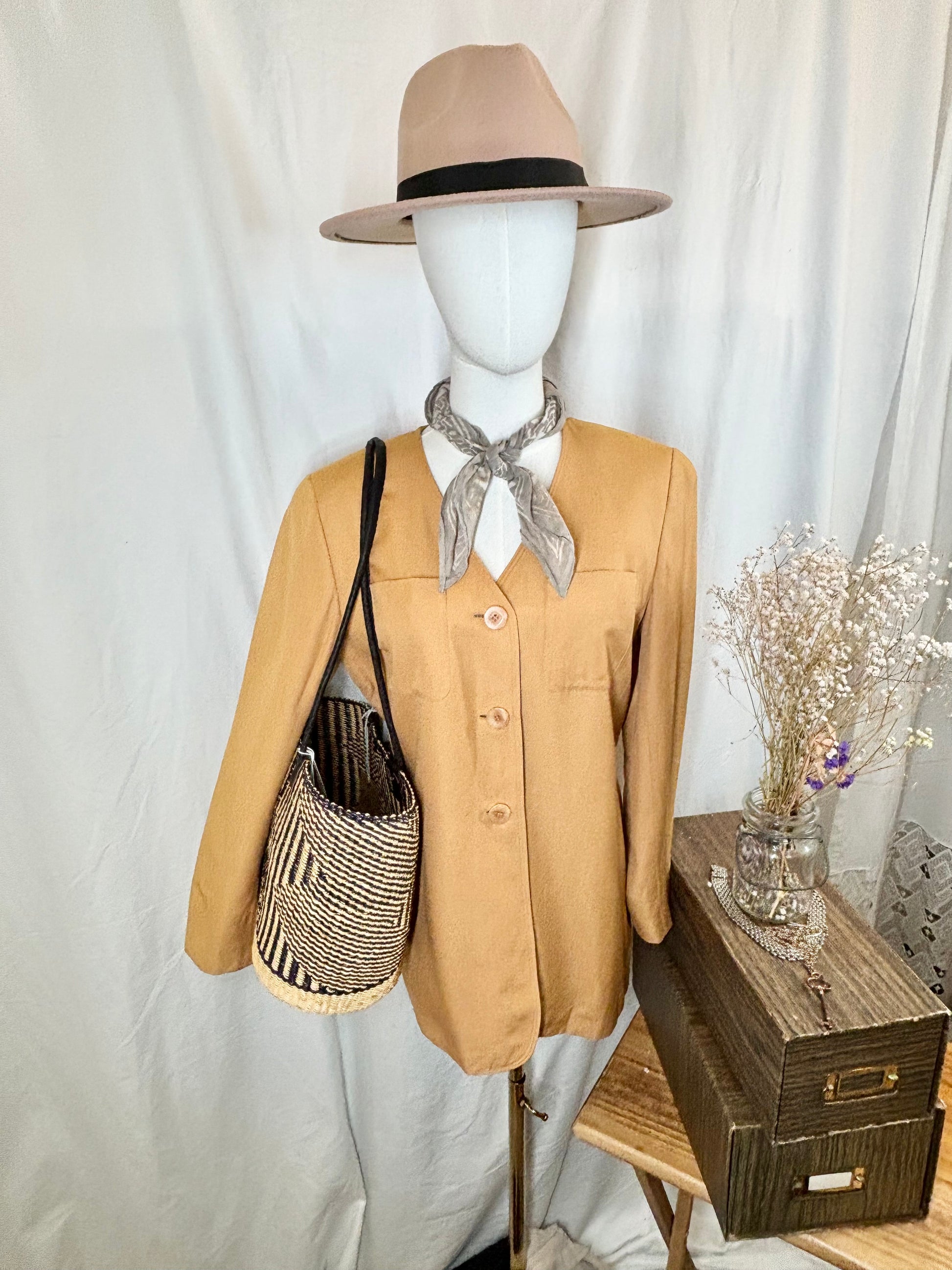 Vintage Liz Claiborne petite blazer in a classic mustard yellow, size 8. This versatile piece works beautifully as a chic jacket or a standalone top, adding a pop of color to any look. Perfect to mix and match with almost anything in your wardrobe!