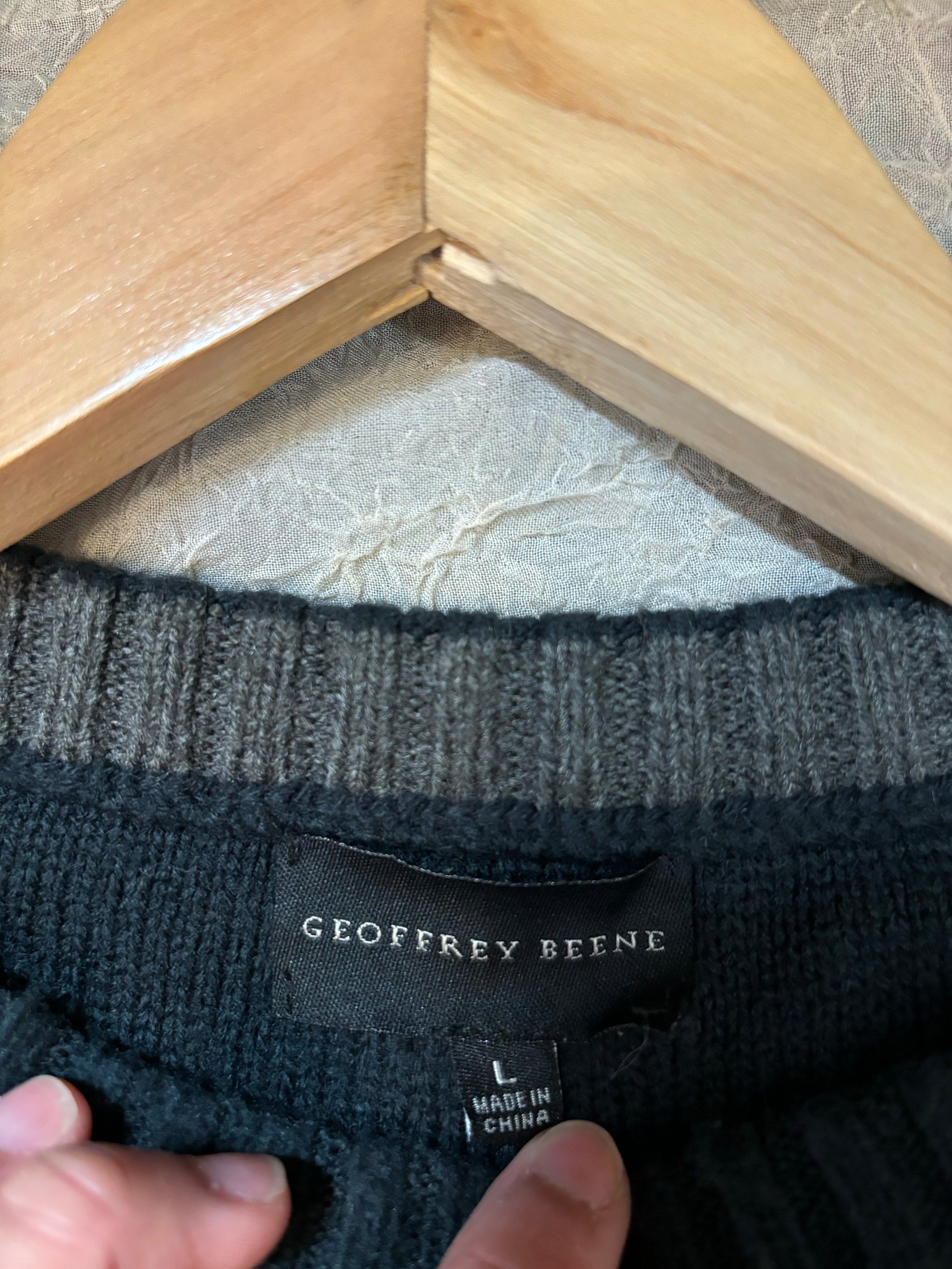This Navy Pullover Sweater, available in size L, is designed by industry expert Geoffrey Beene. A professional and informative choice for any wardrobe, this sweater is crafted with high-quality materials and comes in a stylish navy color.