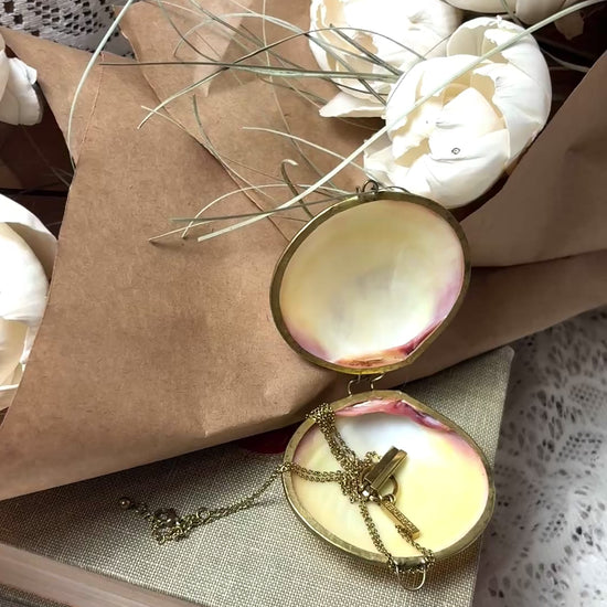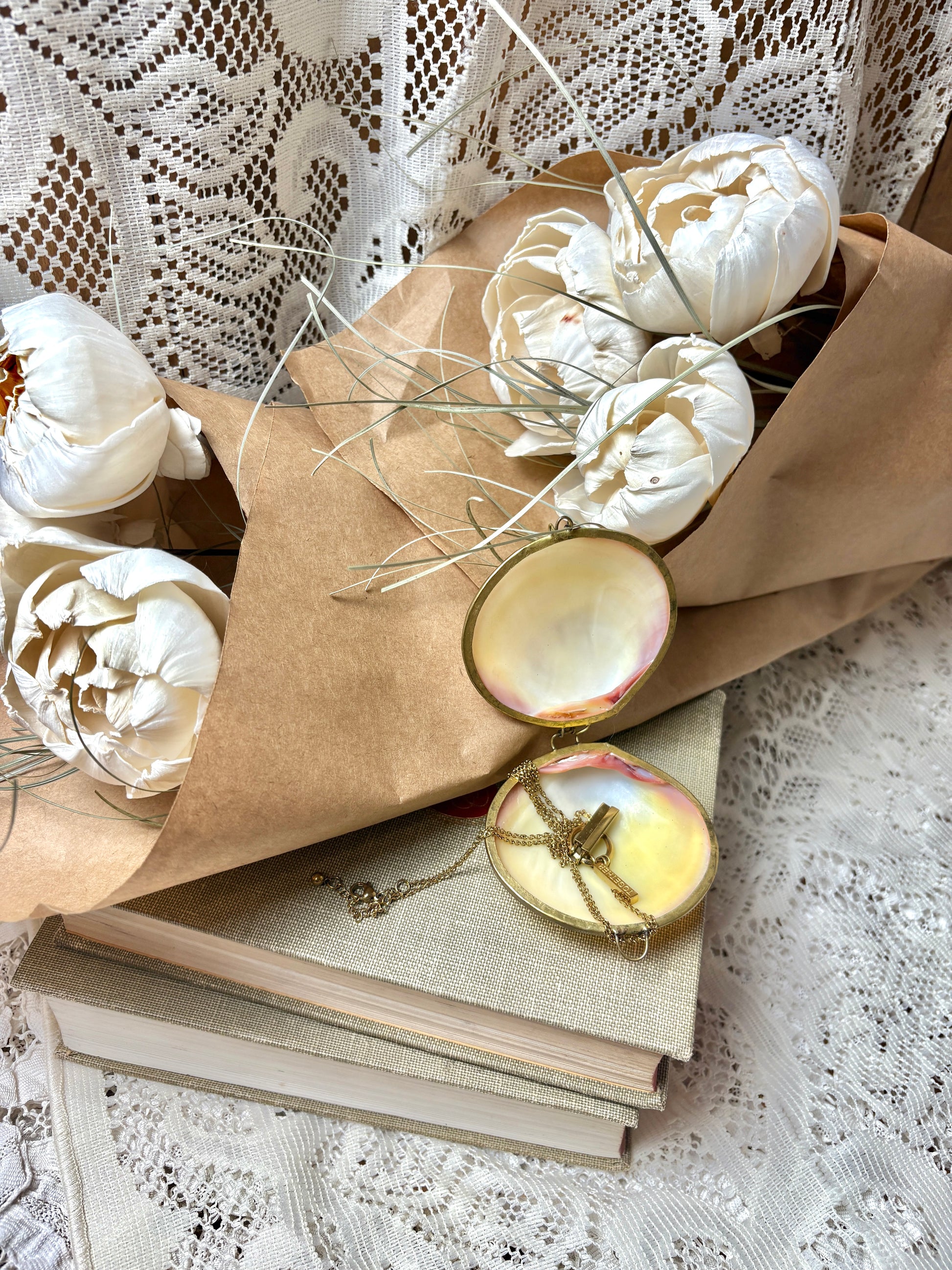 This rare vintage Capriz Mother Of Pearl Shell Trinket Box Pillbox is a handmade piece from the Philippines, featuring a hinged design in beige and gold colors. The intricate craftsmanship and use of mother of pearl make this trinket box a unique and stylish addition to any vintage collection. Perfect for storing small keepsakes or jewelry, this original piece adds a touch of elegance to any space.
