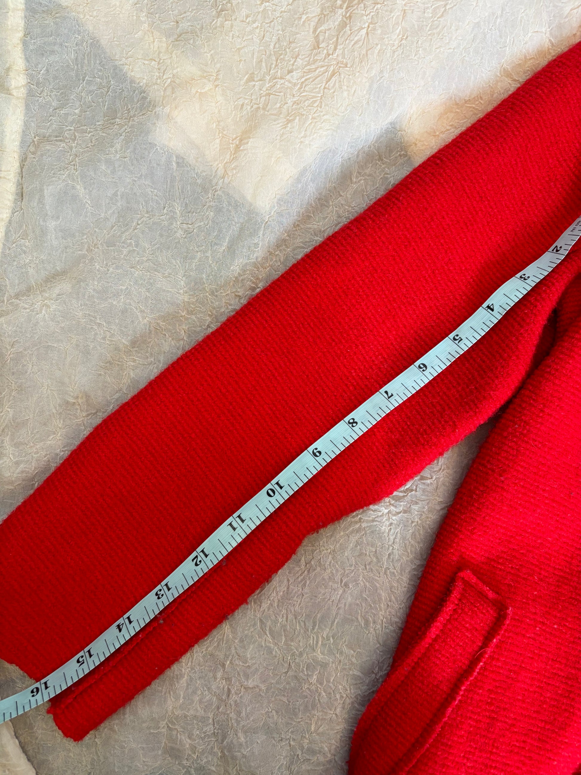 The red coat is perfect for staying warm during the winter season, and can be worn for any occasion, including the upcoming Christmas holiday.