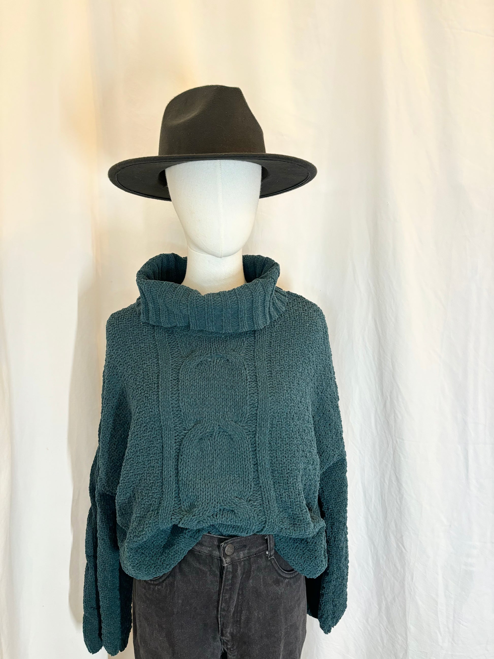 The turtleneck sweater by Brand Seven7 features a soft and warm cable knit design, crafted from Chenille fabric. It comes in a beautiful green color, making it a stylish and cozy addition to any wardrobe.