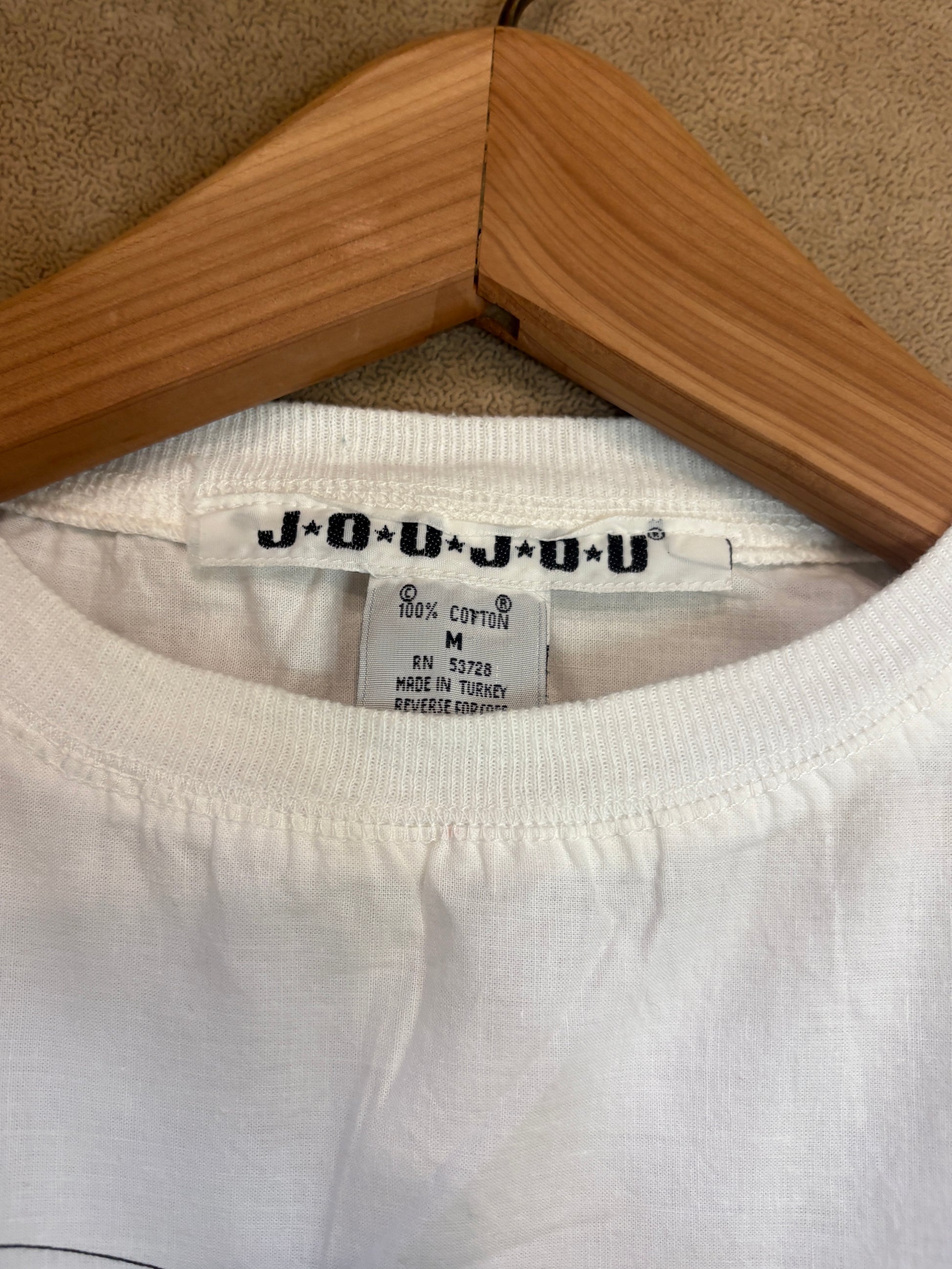 VINTAGE 90s Navy Print Striped Cotton T-Shirt Medium
