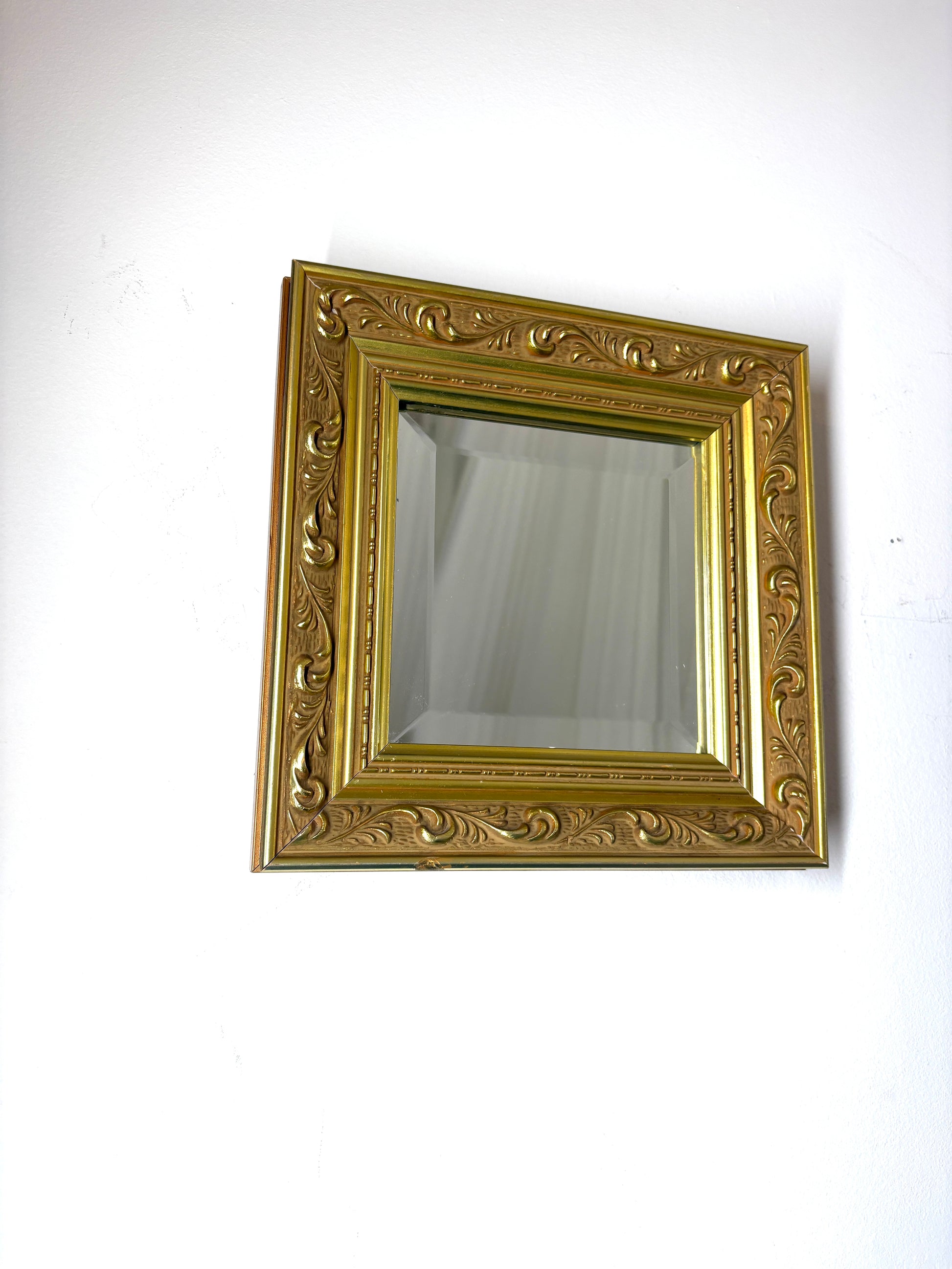 Vintage Accent Mirror Square Ornate Wooden Frame 10x10