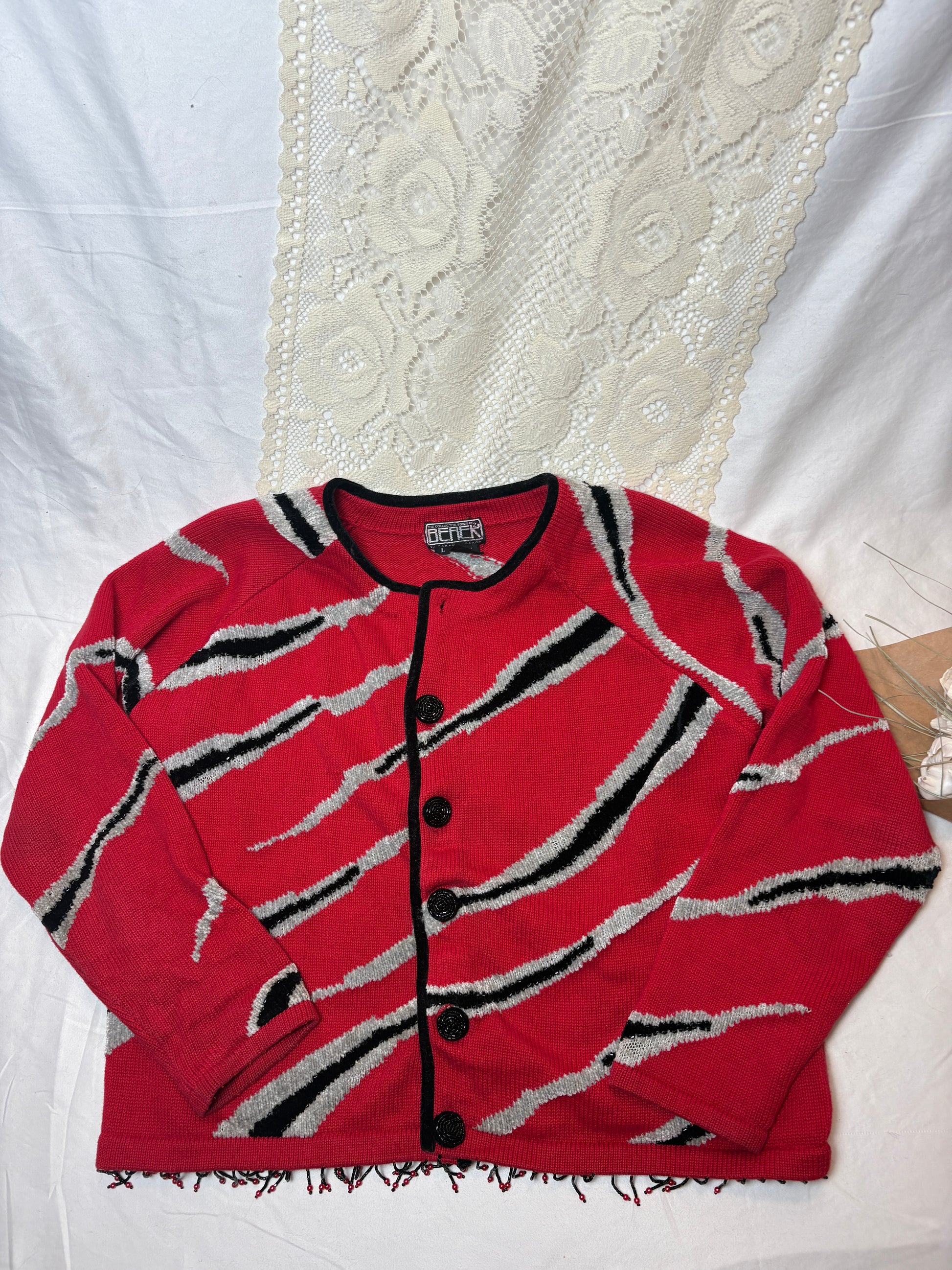 Vintage Red Beaded Sweater Pullover – Women’s L (Missing First Button)