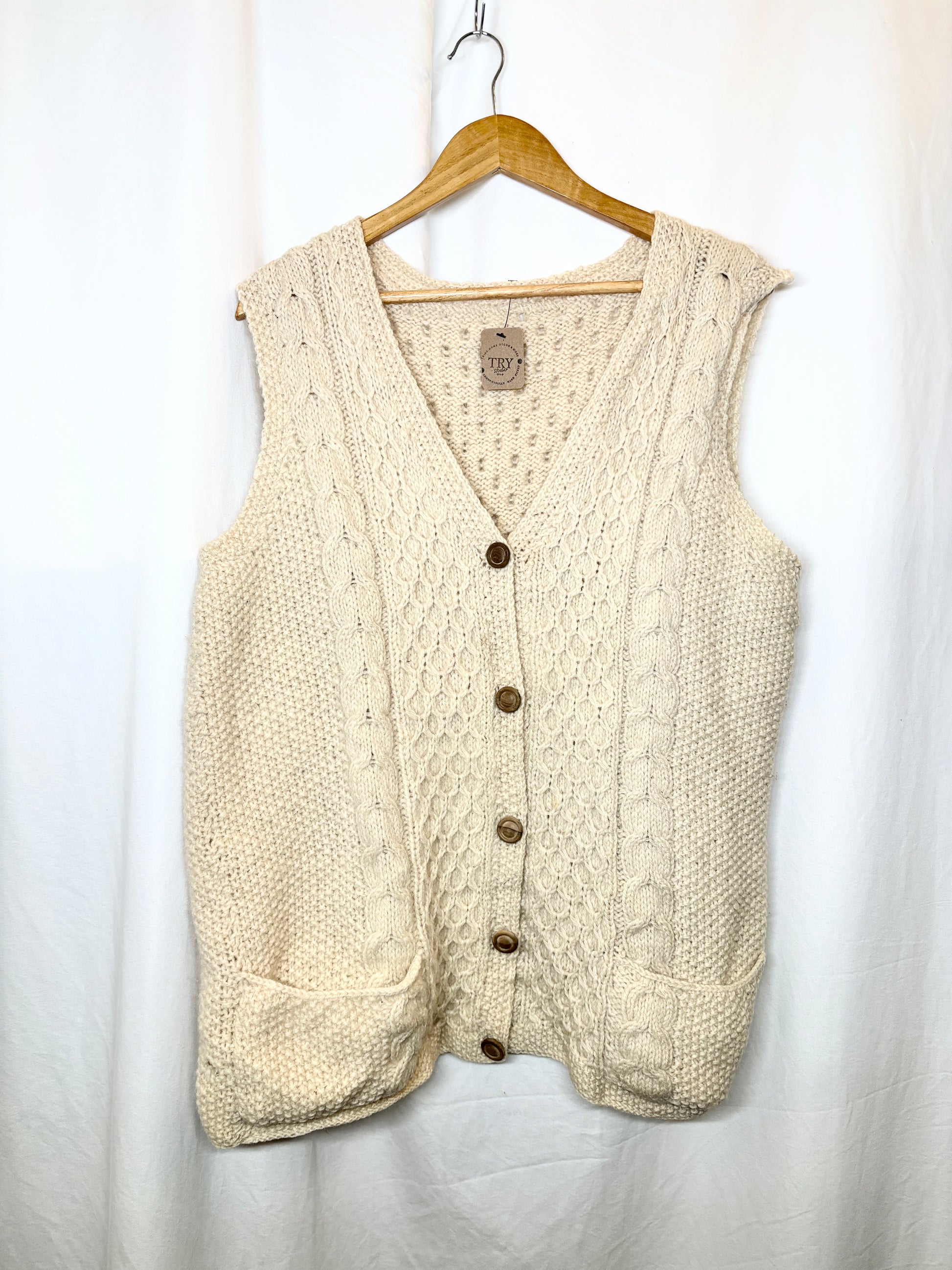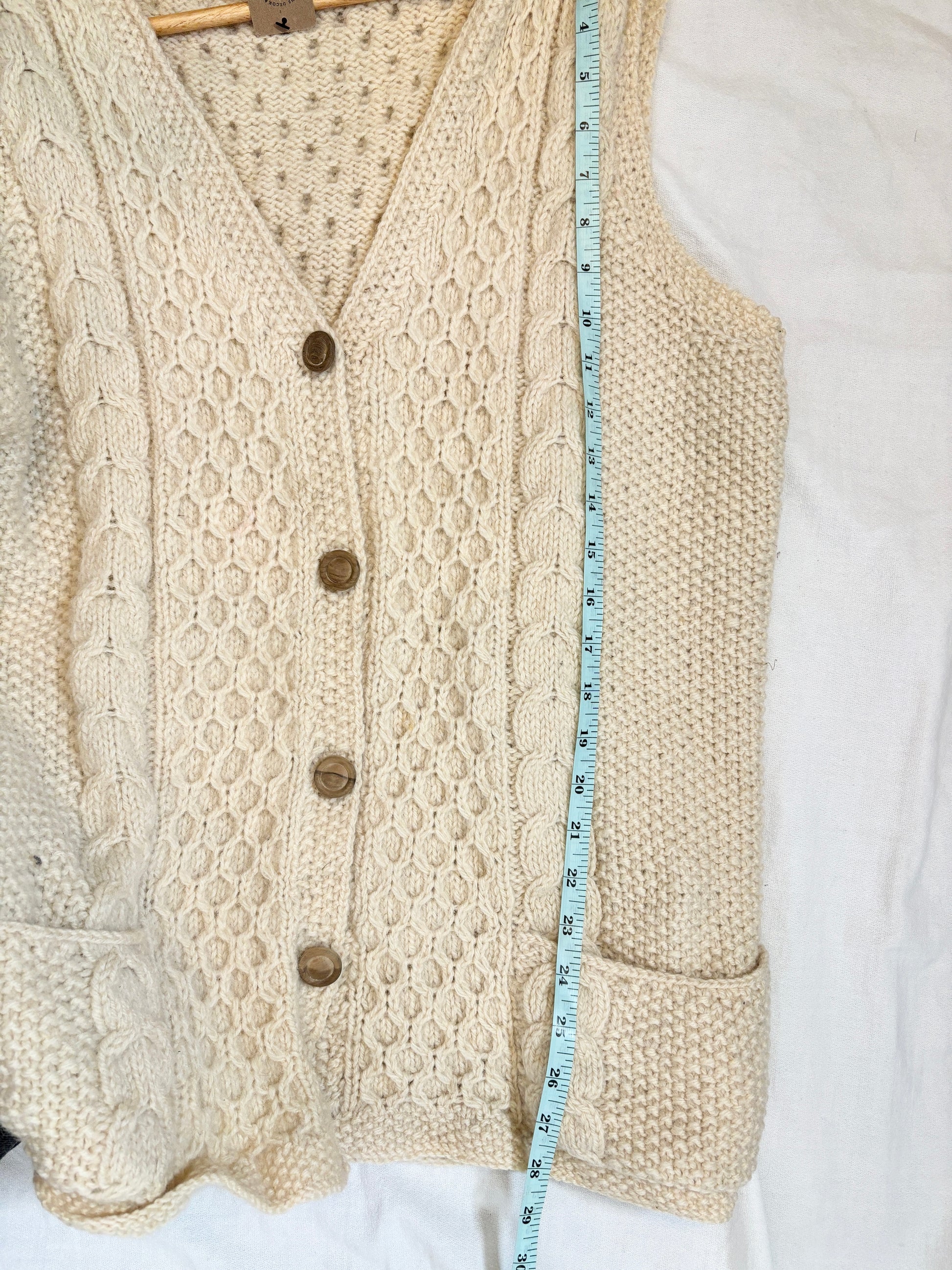 Vintage Hand-Knit Wool Sweater Vest – Cream Color