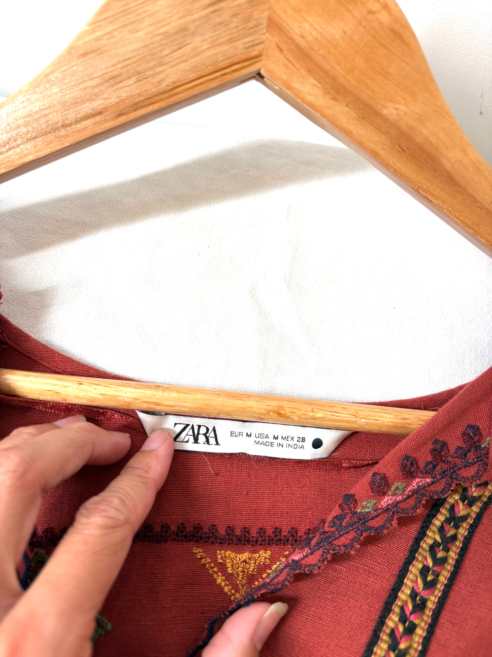 ZARA Intricate Embroidered Burnt Orange Oversized boho Blouse M